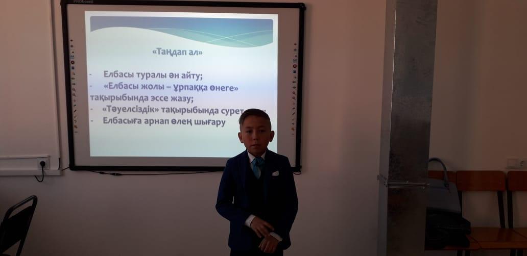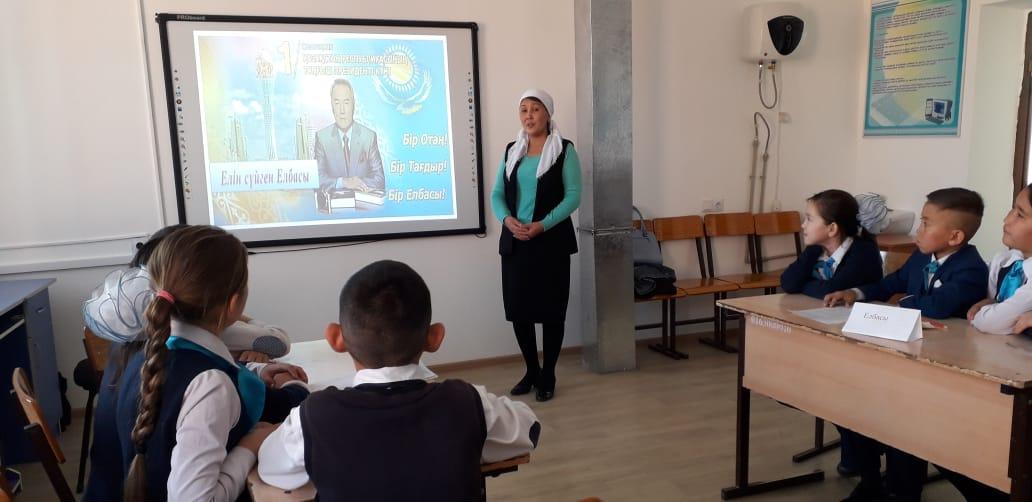 29 қараша 2019 жылы мектебіміздің барлық сыныптарында "Заманауи Қазақстан. Елбасының көшбасшылығы сабақтары" тақырыбында жалпыреспубликалық ашық сабақтар өткізілді. Сонымен бірге Қазақстан Республикасының Тұңғыш Президенті - Елбасы кітапханасының қоры ұсынған "Өзгерістер қуаты" және "Қазақстан патриоты" деректі фильмдері көрсетілді. 1-4 сыныптарға, 5-8 сыныптарға және 9-11 сыныптарға арналған жалпыреспубликалық ашық сабақты өткізу тұжырымдамасына сүйене отырып, әр сынып әртүрлі тақырыптарды, яғни "Елін сүйген - Елбасы", "Елбасының дара жолы", "Елбасы даналығы", "Еңбексүйгіш Сұлтан", "Н.Ә.Назарбаев және "Байқоңыр" космодромы" т.б. таңдай отырып сынып сағаттарын өткізді. Сынып сағаттарының негізгі мақсаты білім алушыларды Ұлт Көшбасшысын мақтан тұтуға, патриотизмге, Отанды сүюге тәрбиелеу, Тұңғыш Президент - Елбасы Н.Ә.Назарбаевтың көшбасшылық қасиеттерімен, өмірімен және еңбек жолымен таныстыру, білім алушылардың коммуникативтік дағдыларын, ойлау қабілеттерін дамыту болды. "Елбасының көшбасышылық сабақтары" бір мезгілде өткізілді.