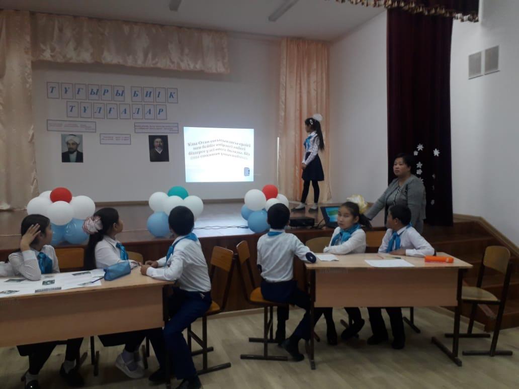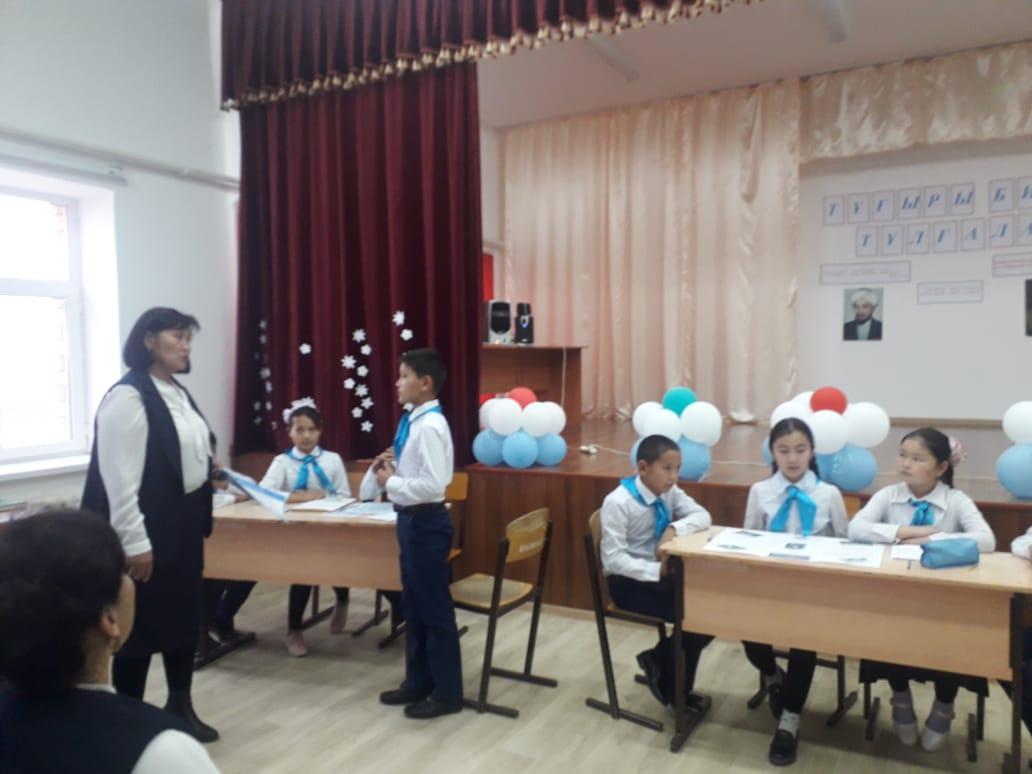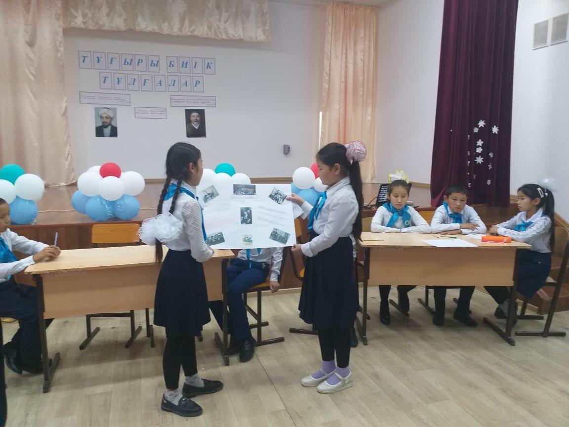 Мектебіміздің 6-сыныбында "Тұғыры биік тұлғалар" тақырыбында ашық тәрбие сағаты болып өтті. Ашық тәрбие сағатының негізгі мақсаты білім алушыларға танымал тарихи тұлғаларды таныстыра келе, аяулы тұлғаларды қастерлей білуге, олардың өмір жолдарынан, қызметінен өнеге алуға тәрбиелеу. Өз өлкесін танып біліп, өркенді, өнегелі азамат болуына ықпал ету. Сынып бөлінген үш топ бойынша үйге берілген "Өнегелі ғұмыр: тарихи тұлғалар" тақырыбында тапсырмаларын ізденімпаздықпен орындап, өздеріне берілген "Ауылдағы тарихи тұлғалар", "Ауданымыздағы тарихи тұлғалар", "Облысымыздағы тарихи тұлғалар" тақырыптарында презентация, постер, бүктемелерін қорғап шықты. Білім алушылар тапсырмаларды шығармашылықпен орындағандары көрініп тұрды. Тәрбие сағаты барысында білім алушылар өз өнерлерін көрсетті және өздерінің ой-пікірлерімен бөлісті. Тәрбие сағаты жоғары дәрежеде өтіп, мұғалімдердің өте жақсы деген бағасын алды.