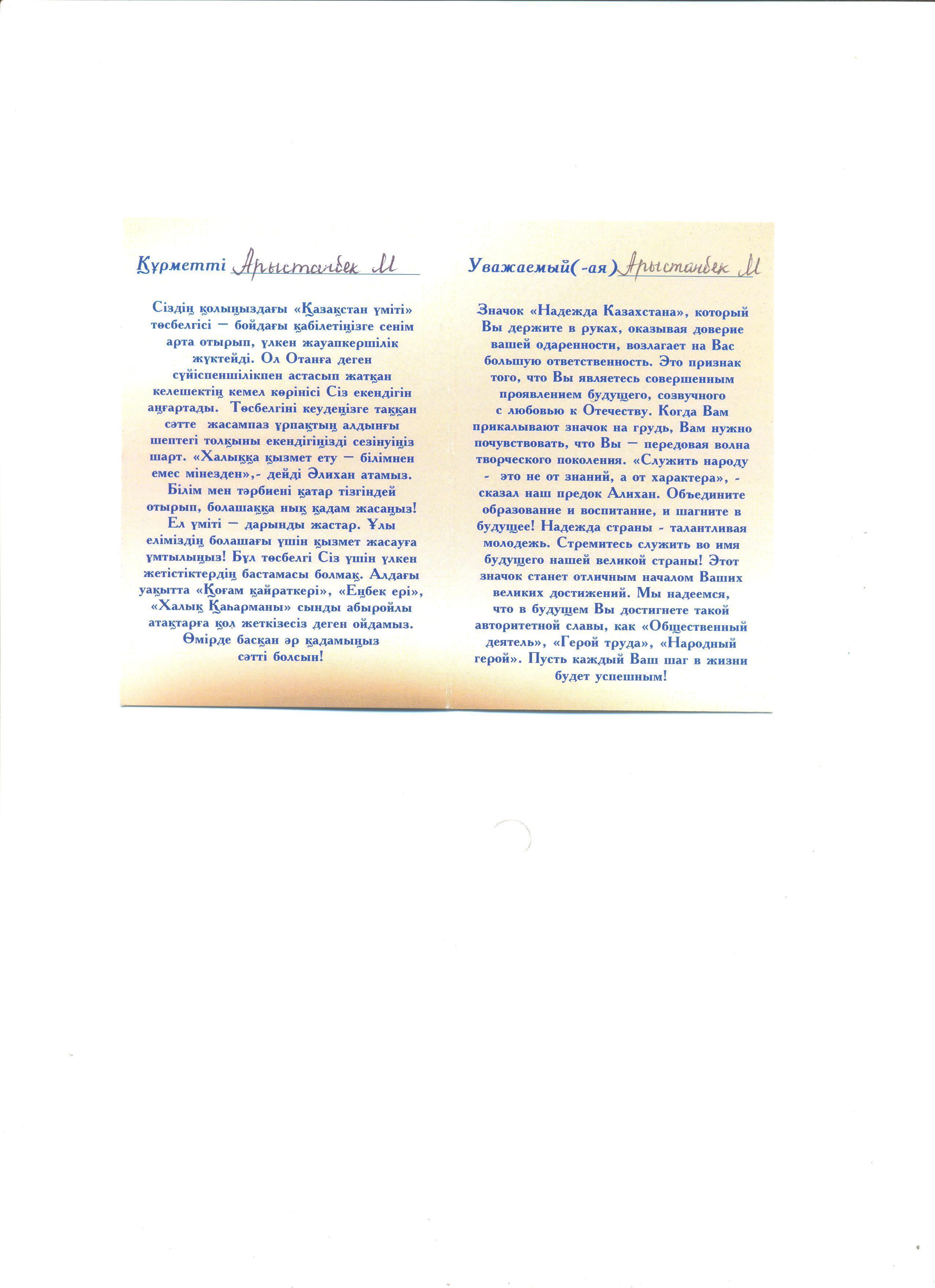 » » "Ұлы даланың жеті қыры" "Үздік оқушы" номинациясының иегері