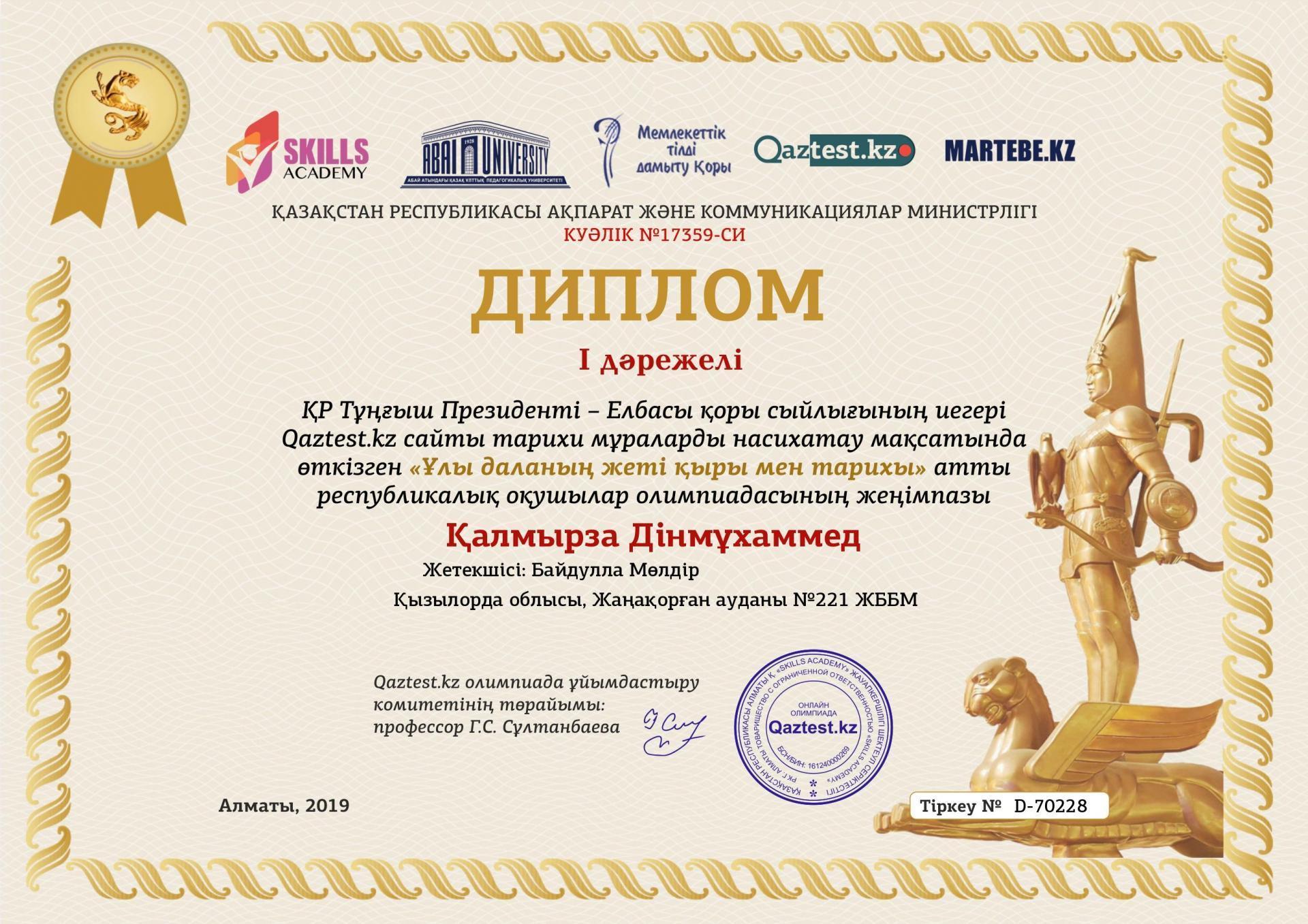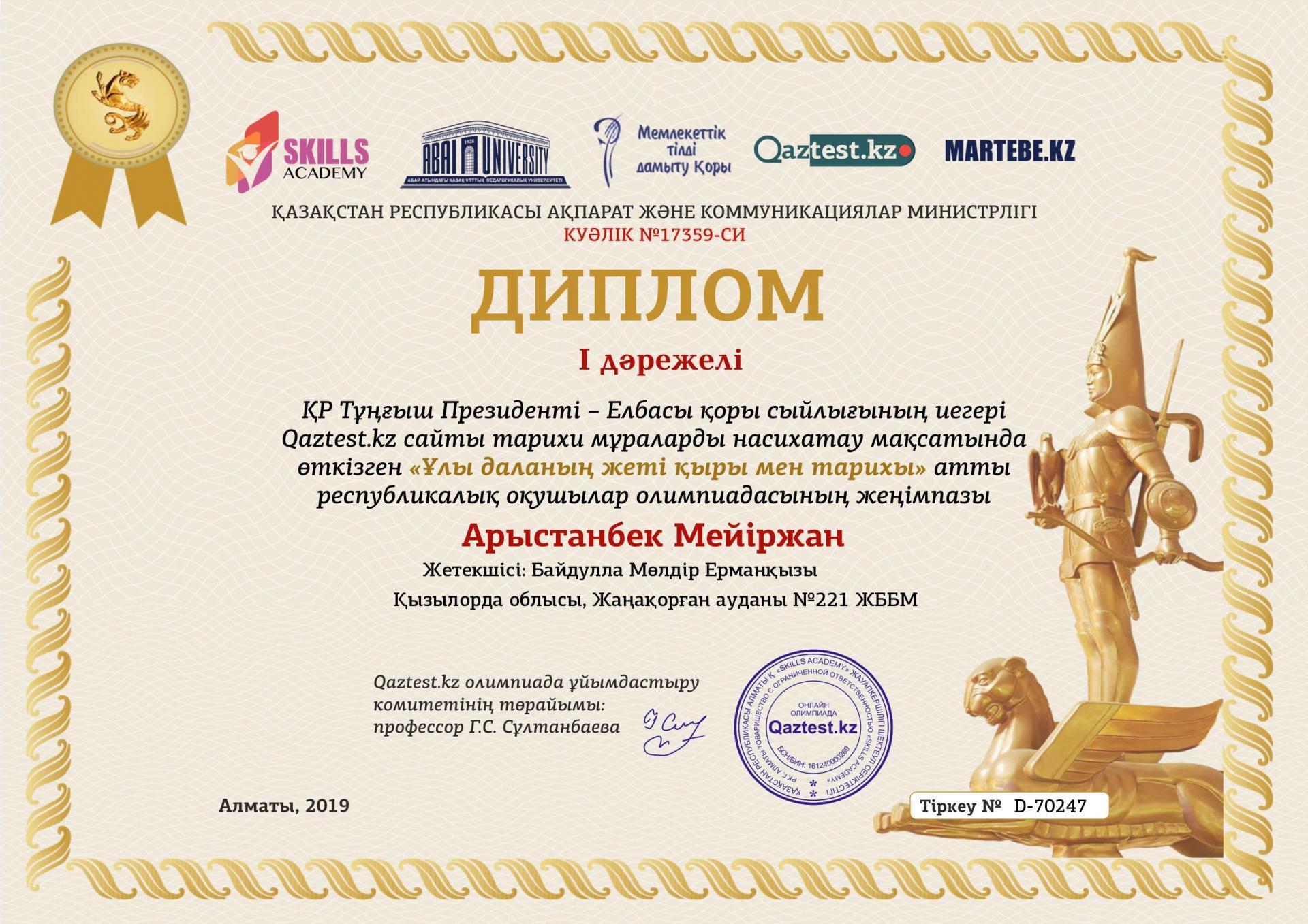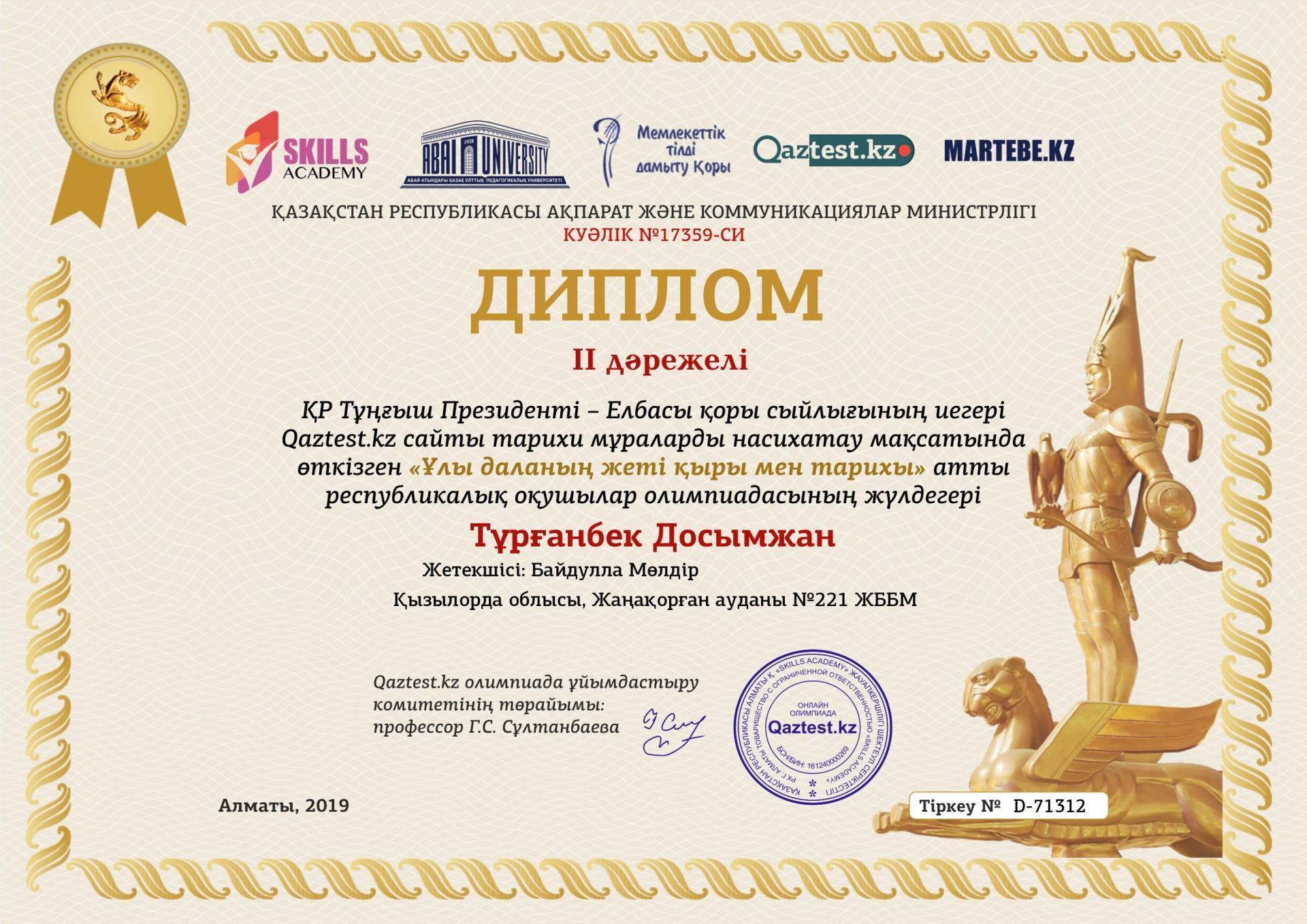 » » "Ұлы даланың жеті қыры" олимпиадасының жеңімпаздары