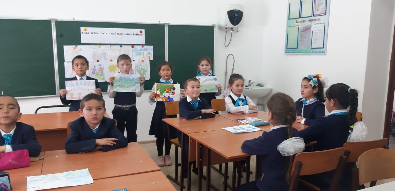 №221 негізгі орта мектебінде 2020 жылдың қаңтар айында бастауыш сынып оқушылар арасында «Адал және сатылмайтын еңбек бейнесі» тақырыбында сурет байқауы ұйымдастырылды.
