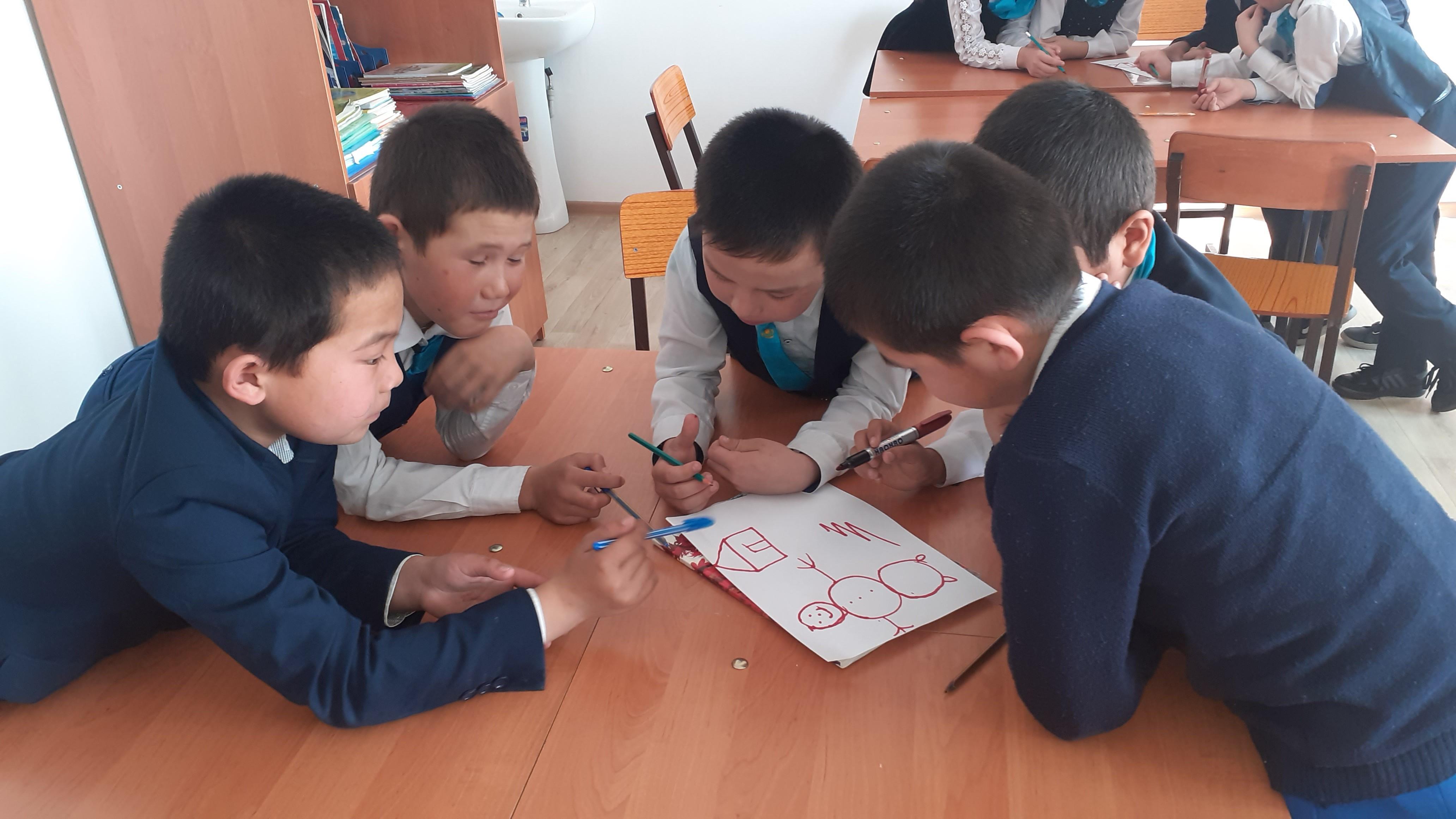 Түзету –дамыту тренинігіне 15 оқушы қатысты. Оқушылар «Сәлемдесу» жаттығуында бір біріне жақсы тілектер айта білді. «Кім жылдам?» жаттығуында оқушылар жылдам боламыз деп асығып, көп сөздерге мән бермей асығыстық танытып, әріптерді сызуды ұмыт қалдырған. Оқушылар жарыс деп түсінгенін кері байланыс кезінде айтып өтті, жарыс емес бұл жерде зейін қою керектігі ескертілді. «Түзету» жаттығуында оқушылар «Шалқан» ертегісінен берілген үзіндідегі сөздердің қалып кеткен әріптерін табу керектігі ескертілді. «Суретті аяқта» жаттығуында оқушылар топтық жұмыс орындады. Тапсырмада парақтағы суреттерден әртүрлі суреттер ойлап салу тапсырылды. Оқушылар 3 топтада үй салған және екі топ найзағай, күн, гүл, аққала салған. Суретті тез аяқтай білді. «Он сөз» жатығуында оқушыларға барлығына он сөз бірдей оқылды. Мұнда он сөзді қатыстырып, ертегі құрастыру тапсырылды. Тренинг соңында кері байланыс кезінде оқушылар әңгіме құрастыру қиындық тудырғанын, басқа жаттығуларды жеңіл орындап шыққандарын атап өтті.