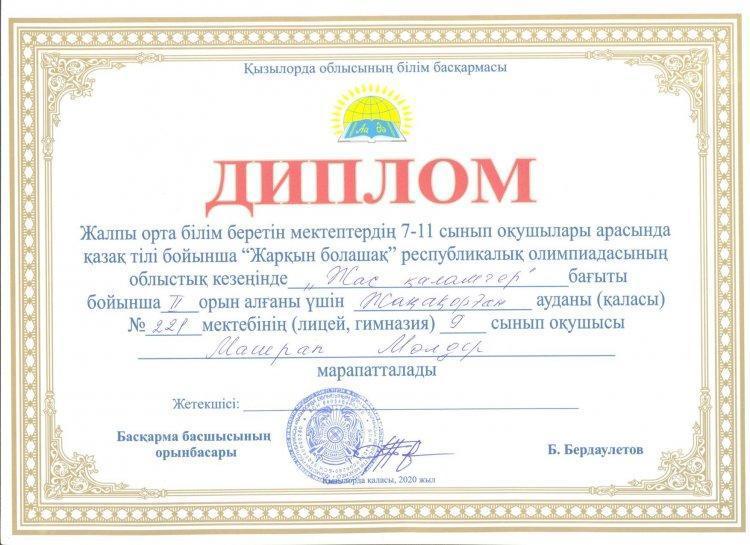 Машрап Мөлдір - біздің мақтанышымыз » №221 орта мектебі