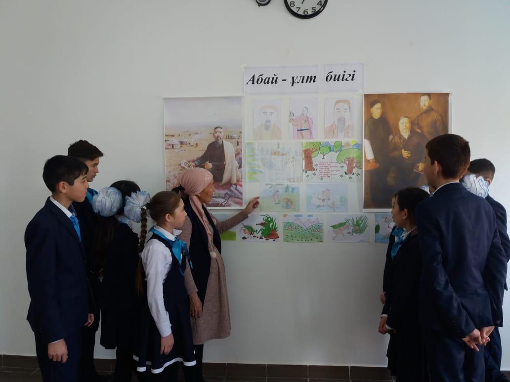 Сурет көрмесіне 1-7 – сынып оқушылары қатысты. Пән мұғалімі Д.Досманбетова ақын шығармашылығы бойынша салған суреттерге талдау жасап өтті. Оқушылар ұйымдастырылған іс-шараға үлкен қызығушылық танытты.