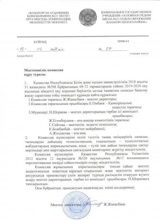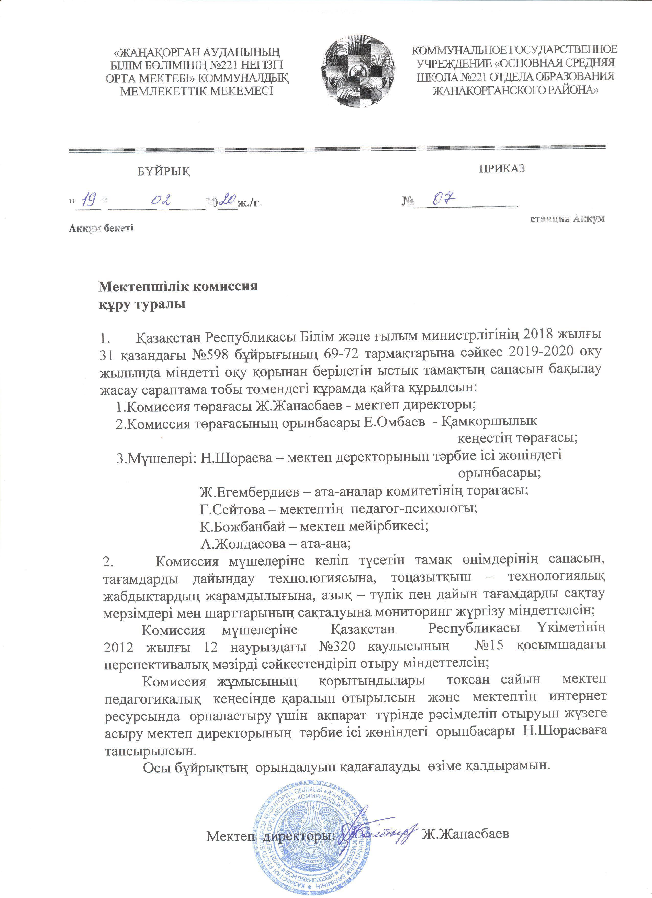Тамақтанудың сапалық мониторингін жасау » №221 орта мектебі
