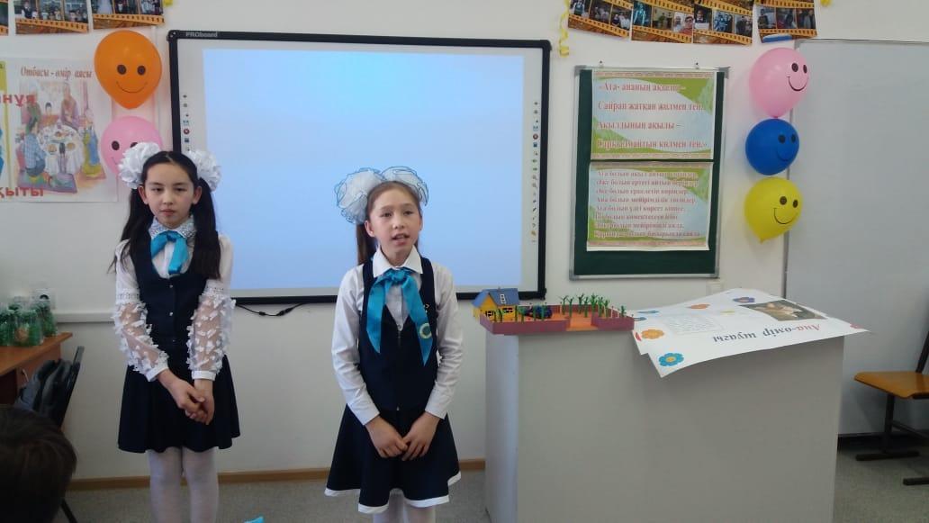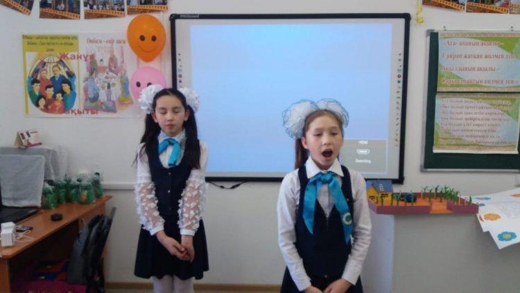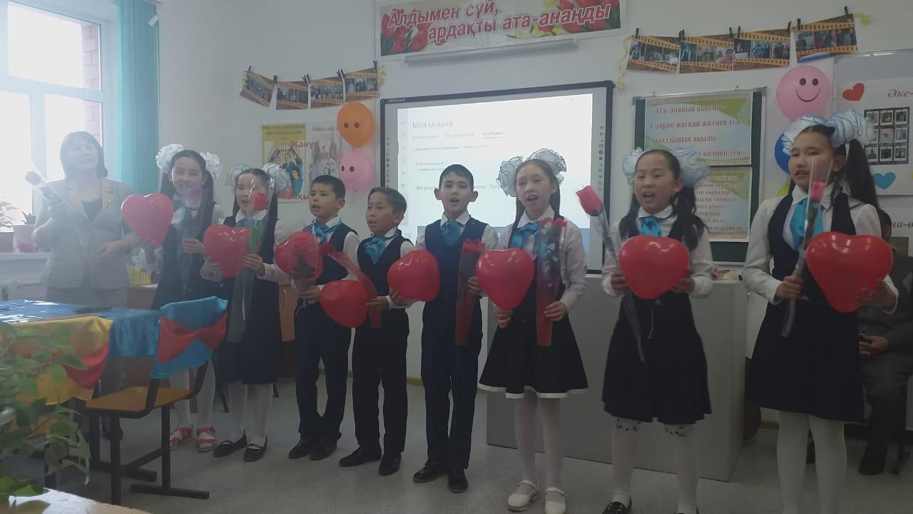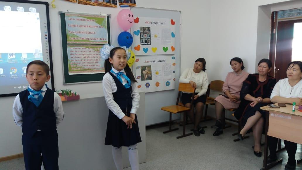 04.03.2020 жылы мектебіміздің 5-сыныбында сынып жетекшісі Байдулла Мөлдірдің ұйымдастыруымен "Алдымен сүй, ардақта ата-анаңды" тақырыбында ашық тәрбие сағаты болып өтті. Тәрбие сағатының мақсаты Оқушыларды адамгершілікке, қайырымдылыққа, жақсы үлгі-өнегеге, үлкенді сыйлау, кішіге қамқор, болу қасиеттеріне, мейірімділікке, қарияларды құрметтеуге тәрбиелеу, ұнамды-ұнамсыз, әдепті-әдепсіз қылықтарды ажырата білуге үйрету. Оқушылардың бойында ата-анаға деген ерекше жылы сезім қалыптастыру, ата-ананың бала өміріндегі ролін түсіндіру, ата-ананы құрметтей, сыйлай білуге тәрбиелеу. Тәрбие сағаты барысында оқушылар өздерінің ата-аналарымен бірге тақырыпқа сай өздеріне берілген тапсырмаларға байланысты жұмыстарымен таныстырды. Оқушылар ата-аналарына арналған ән-шашуларын ұсынды.