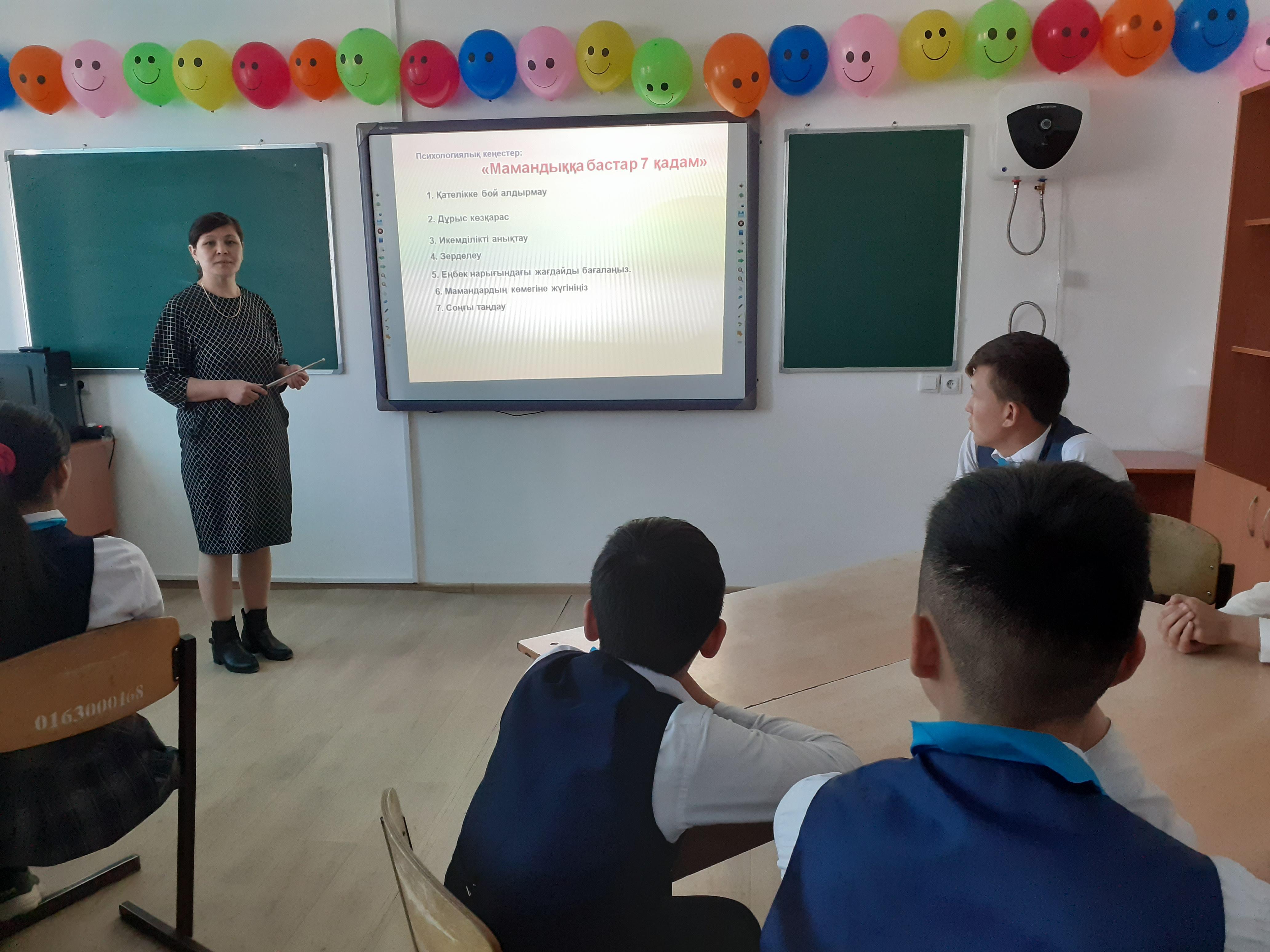 Жаттығулардан соң «Мамандыққа 7 қадам» атты топтық кеңес берілді.