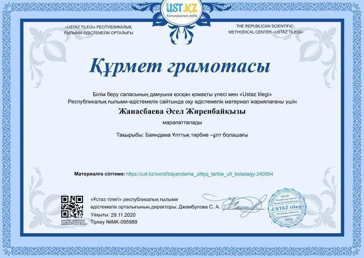 "Ұлттық тәрбие - ұлт болашағы" баяндама