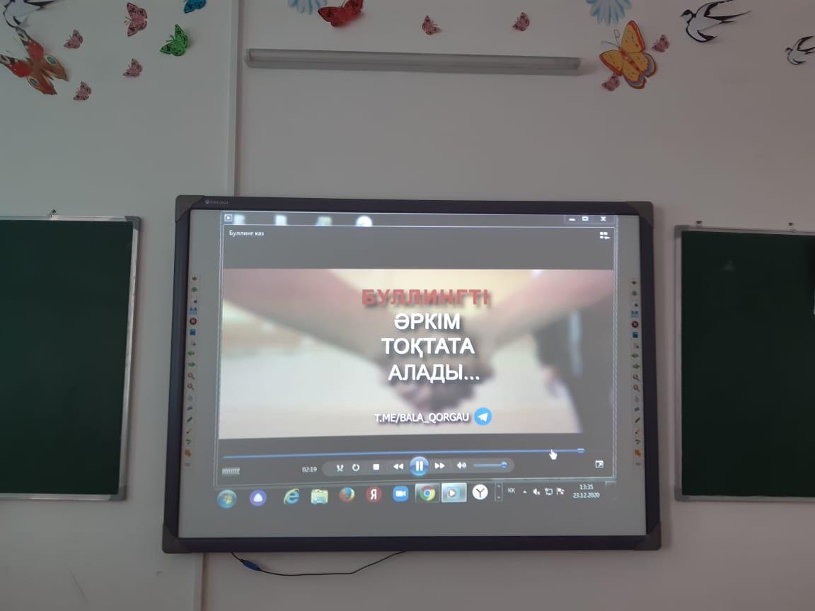 Аудандық білім бөлімінің 2020 жылғы 07 желтоқсандағы №03-11/4725 санды хатына сәйкес, 22 желтоқсан күні №221 негізгі орта мектебінің 7-сыныбында «Төтенше жағдайлар тәуекелдерін төмендету», сонымен қатар «Буллингтың алдын алу» тақырыптарында сынып сағаты өткізілді. Сынып оқушылары Қазақстан Республикасының Білім және ғылым министрлігінің балалардың құқықтарын қорғау комитетімен ұсынылған балалардың құқықтарын қамтамасыз етуге бағытталған арнайы бейнероликтер топтамасын көрді.