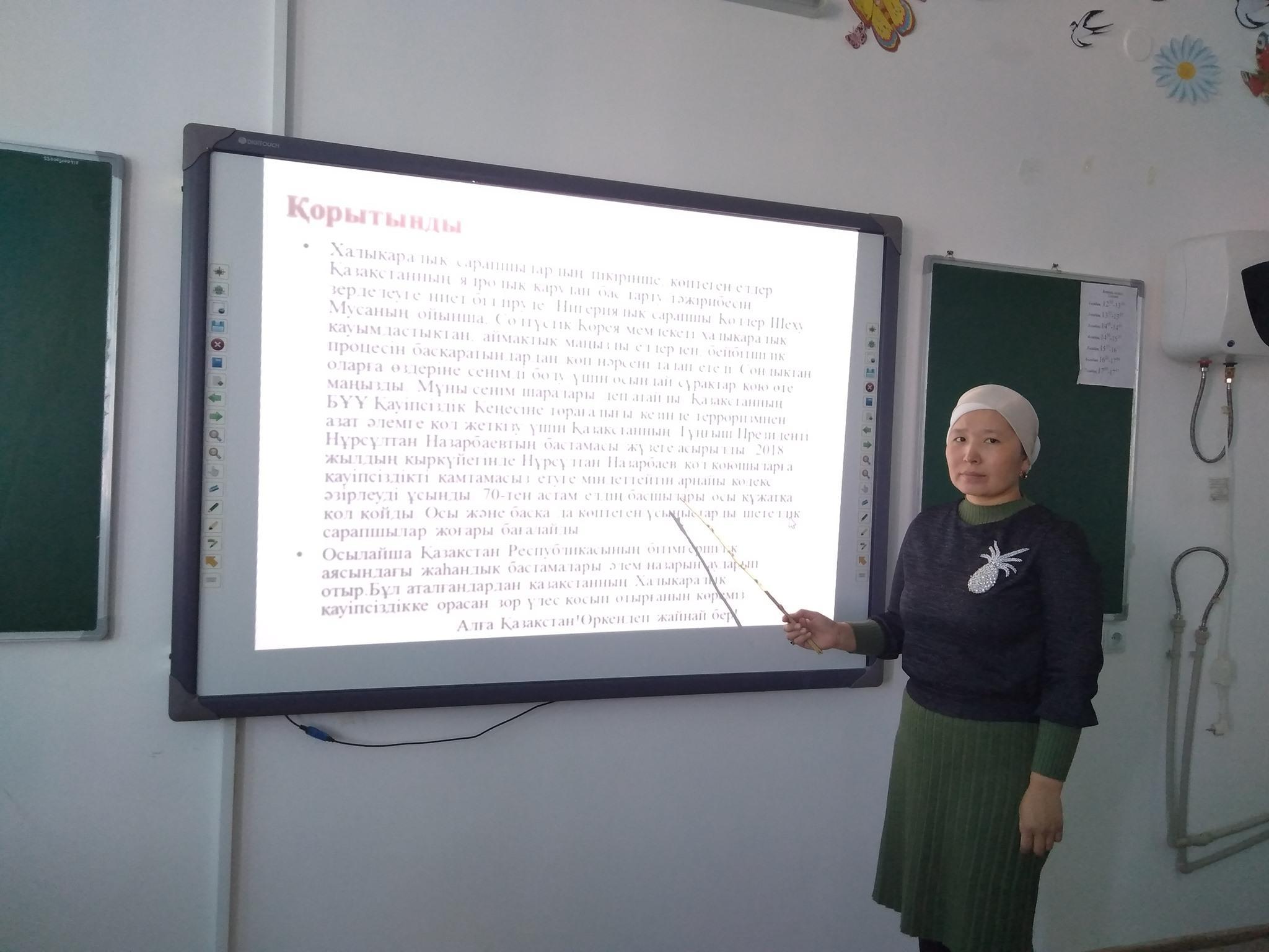 "Қазақстанның жаһандық бастамалары. Халықаралық қауіпсіздікке үлес" сынып сағаты