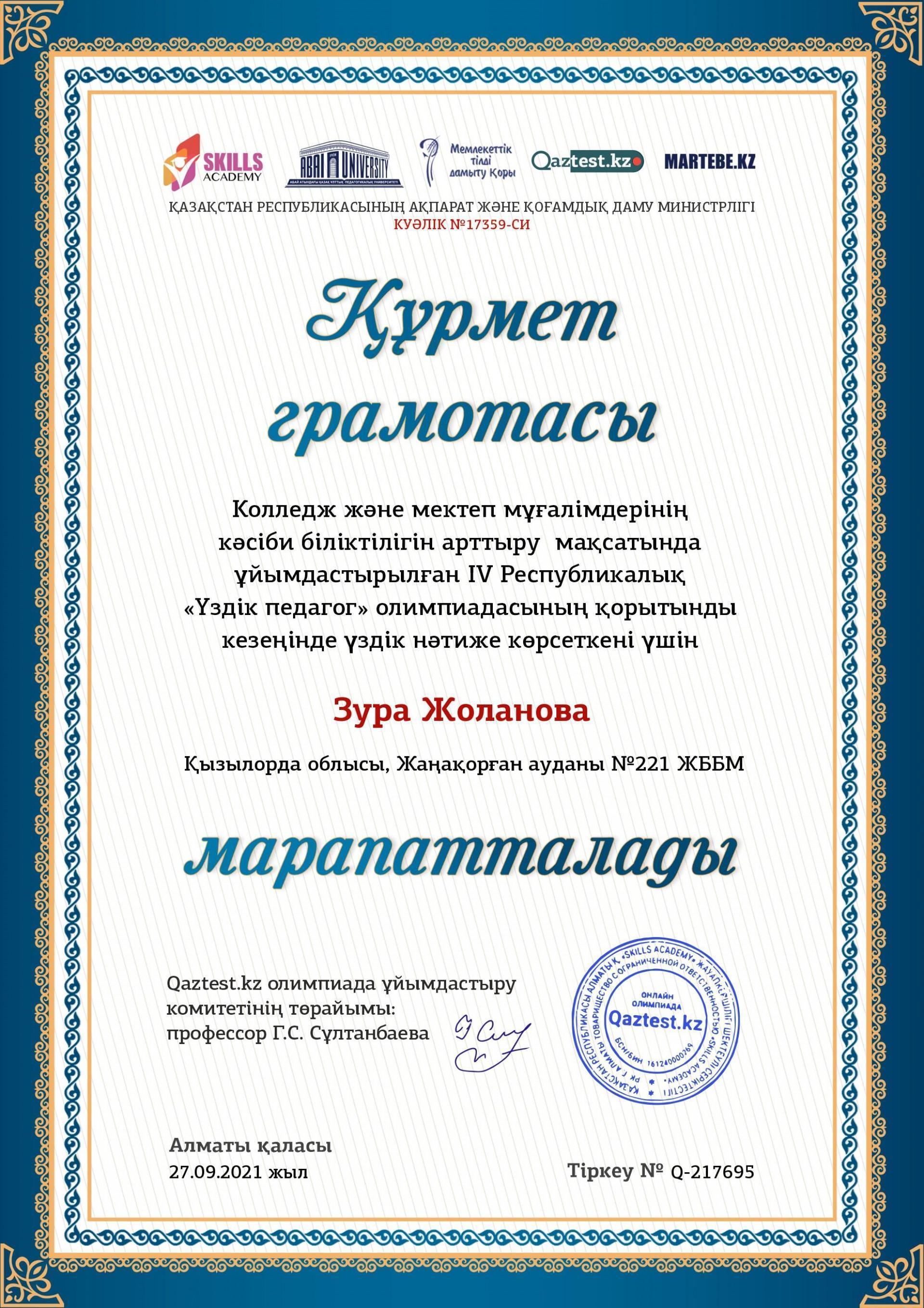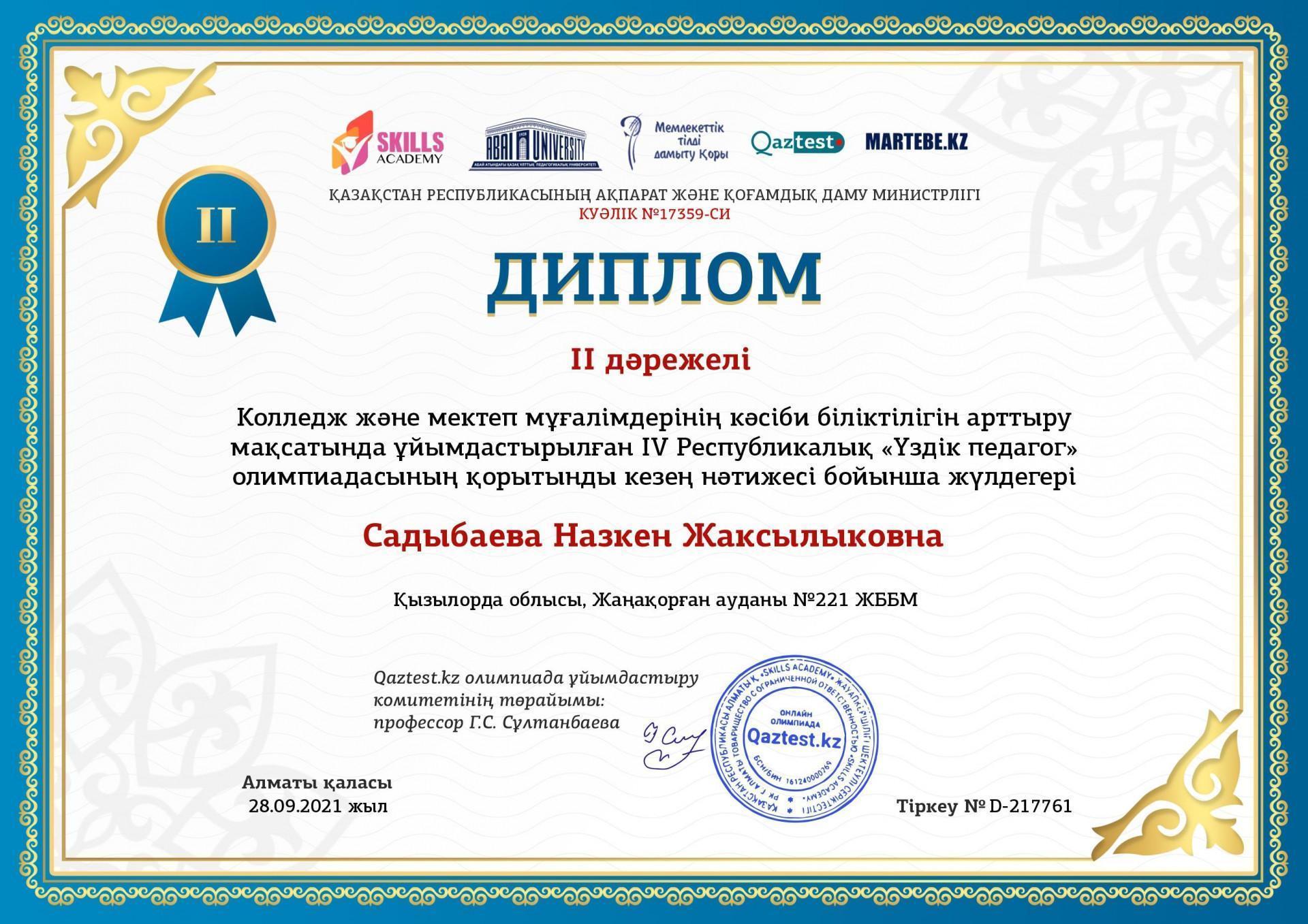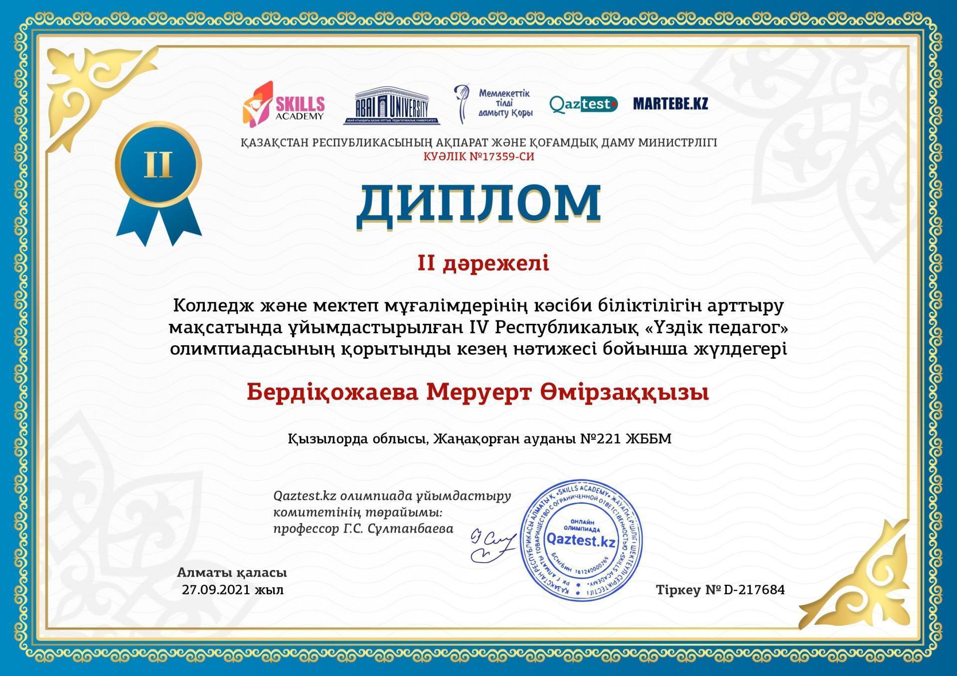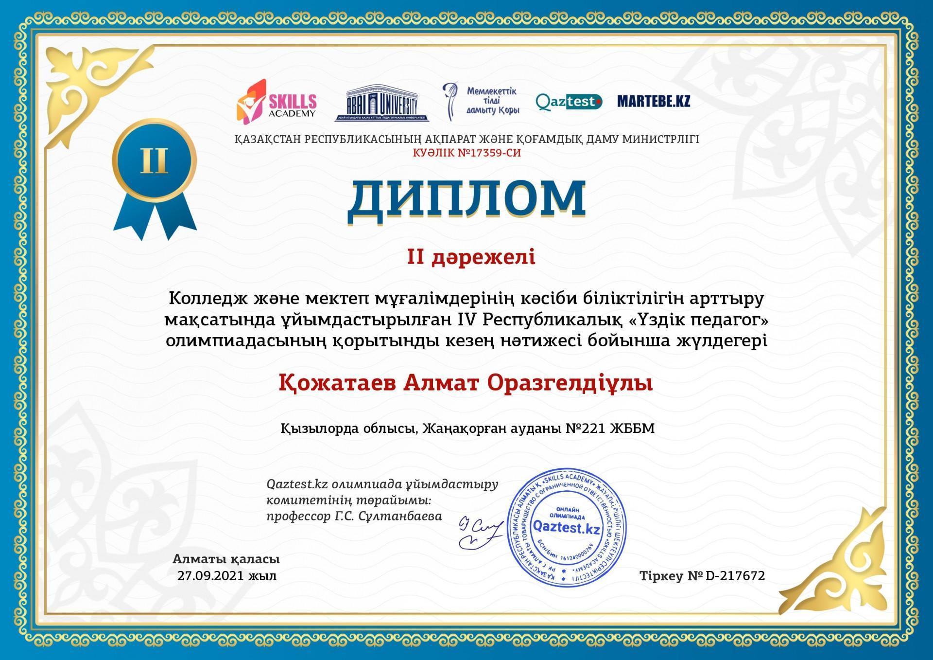 Колледж және мектеп мұғалімдерінің кәсіби біліктілігін арттыру мақсатында ұйымдастырылған ІҮ Республикалық "Үздік педагог" олимпиадасына қатысып жүлделі болған №221 негізгі орта мектебінің мұғалімдерін құттықтаймыз.