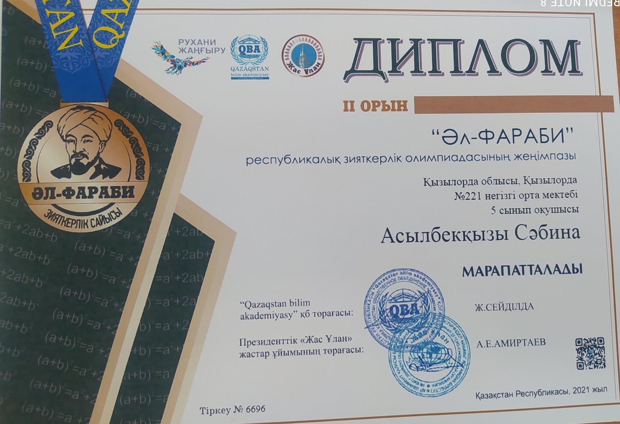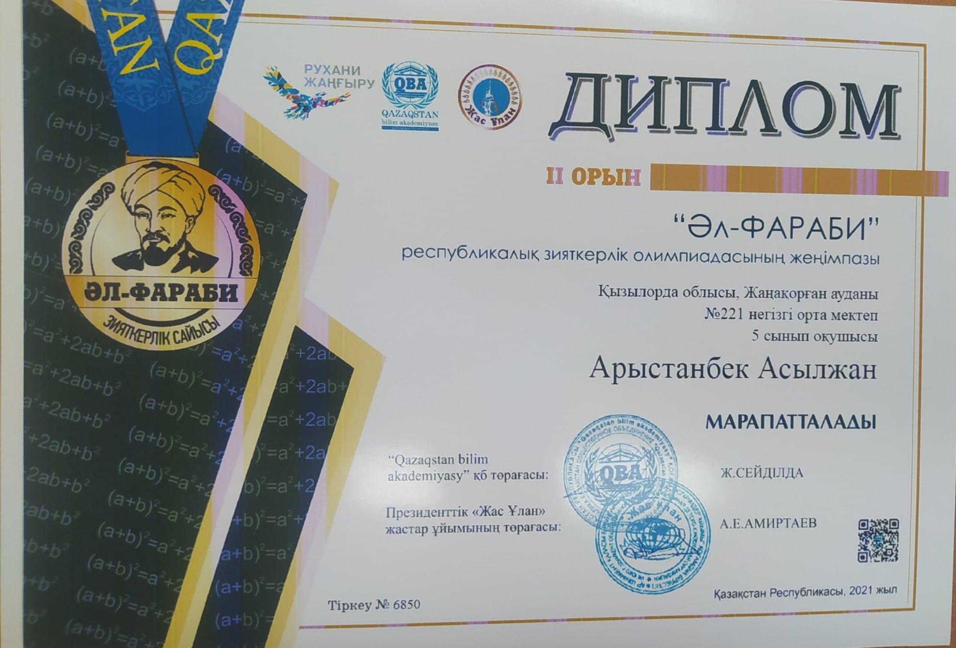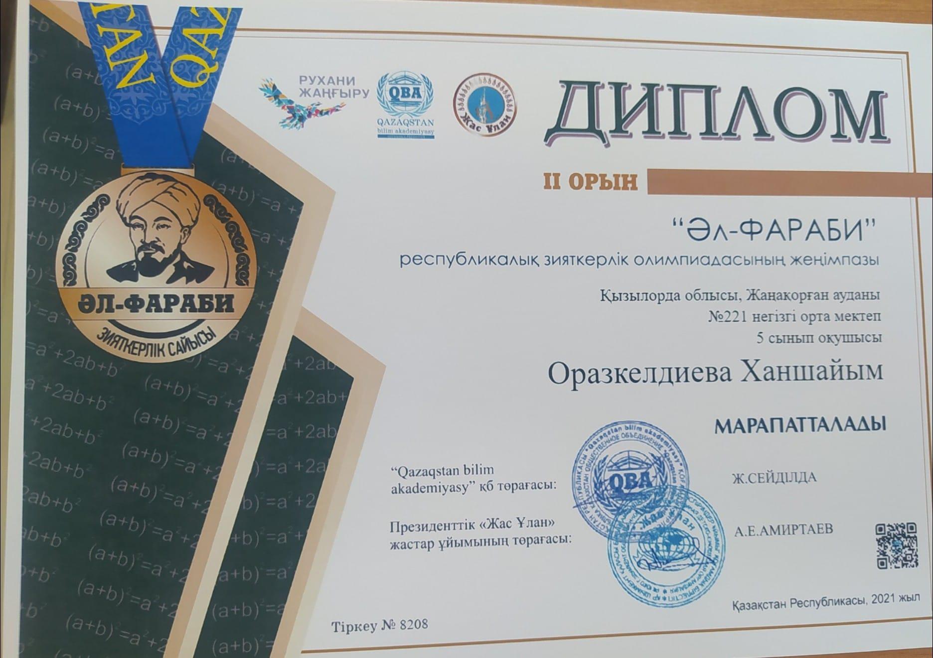 "Әл-Фараби" республикалық зияткерлік олимпиадасы » №221 орта мектебі