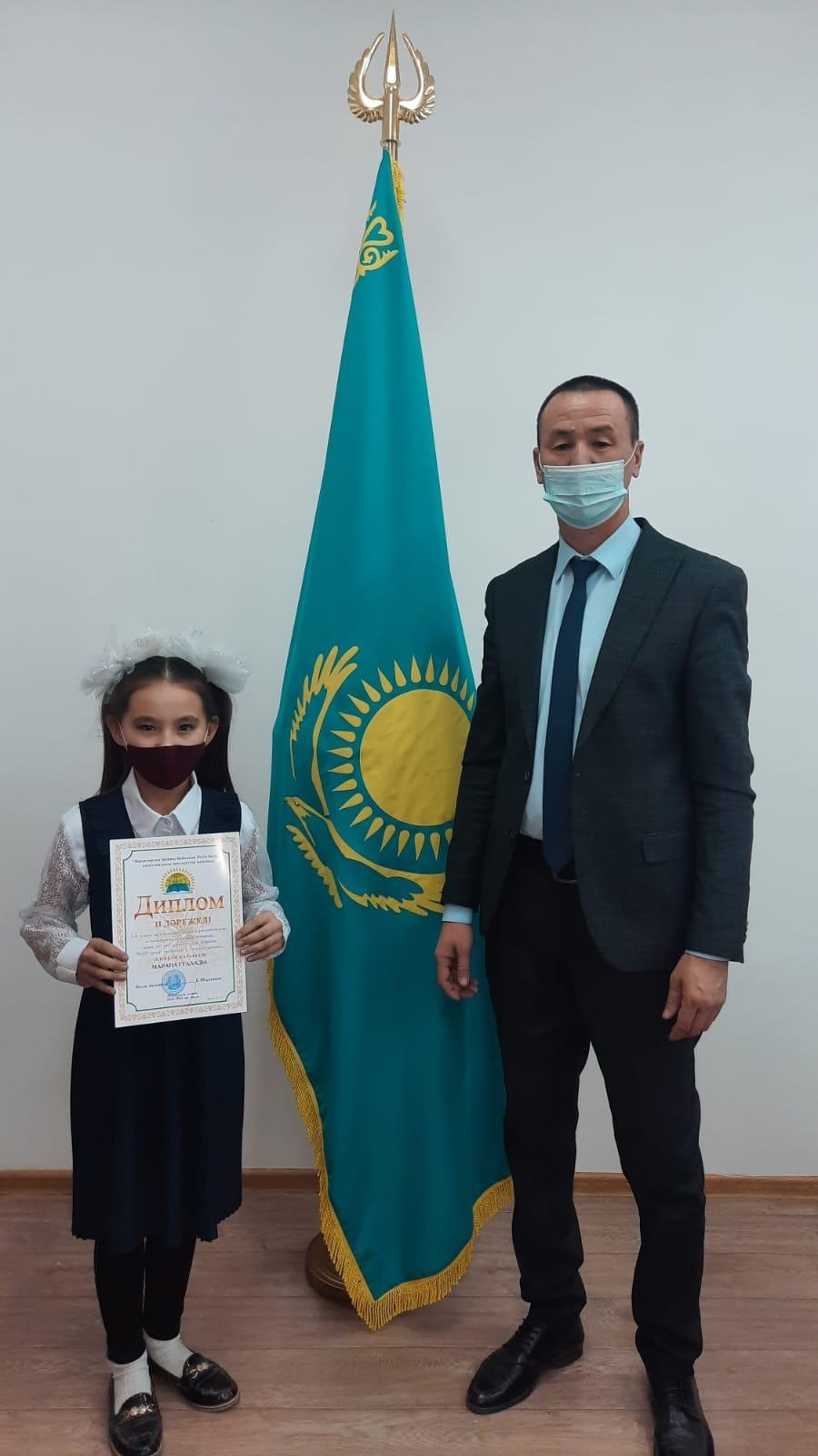 5-сынып оқушысы Әліппай Қарашаш ІІ орын иеленді. Пән мұғалімі: М.Бердихожаева.