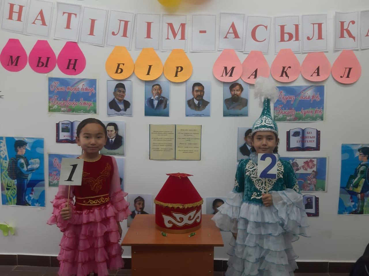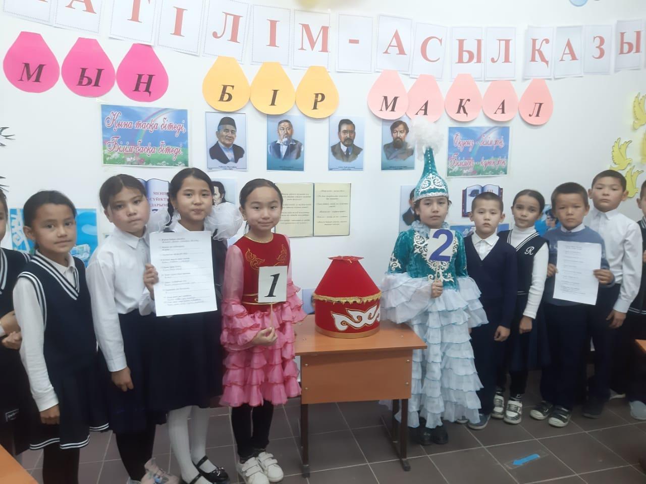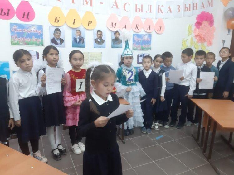 - Бастауыш сыныптар бірлестігіндегі апталықтың екінші күні жоспарға сай өткізілді. 3-4 сынытар арасында бастауыш сынып мұғалімі Г.Төлекова "Мың бір мақал... " мақалдың жалғасын табу сайысын өткізді. Сайыс бірнеше кезеңдерден тұрды. Сайысқа қатысушы оқушылар екі топқа бөлінді. Әр топқа тақырыпқа сай тапсырмалар берілді. Сайыс барысында "Қыран" тобының оқушылары қазақ халқының мақал-мәтелдерін жалғастырып жазу кезінде алғырлық танытып жеңіске жетті.