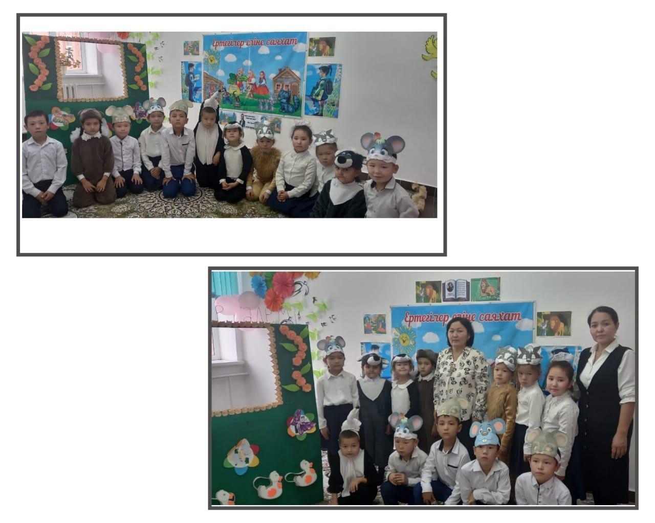 - 24 қараша күні 2-4 сыныптар арасында "Ертегілер еліне саяхат" тақырыбында "Жеті лақ" "Шалқан" және "Мысық пен тышқандар" ертегісінен сахналық қойылым көрсетті. Оқушылар кейіпкер рөлдерін тамаша сомдап шықты.Ұйымдастырушы бастауыш сынып мұғалімі: Ж Ташимова