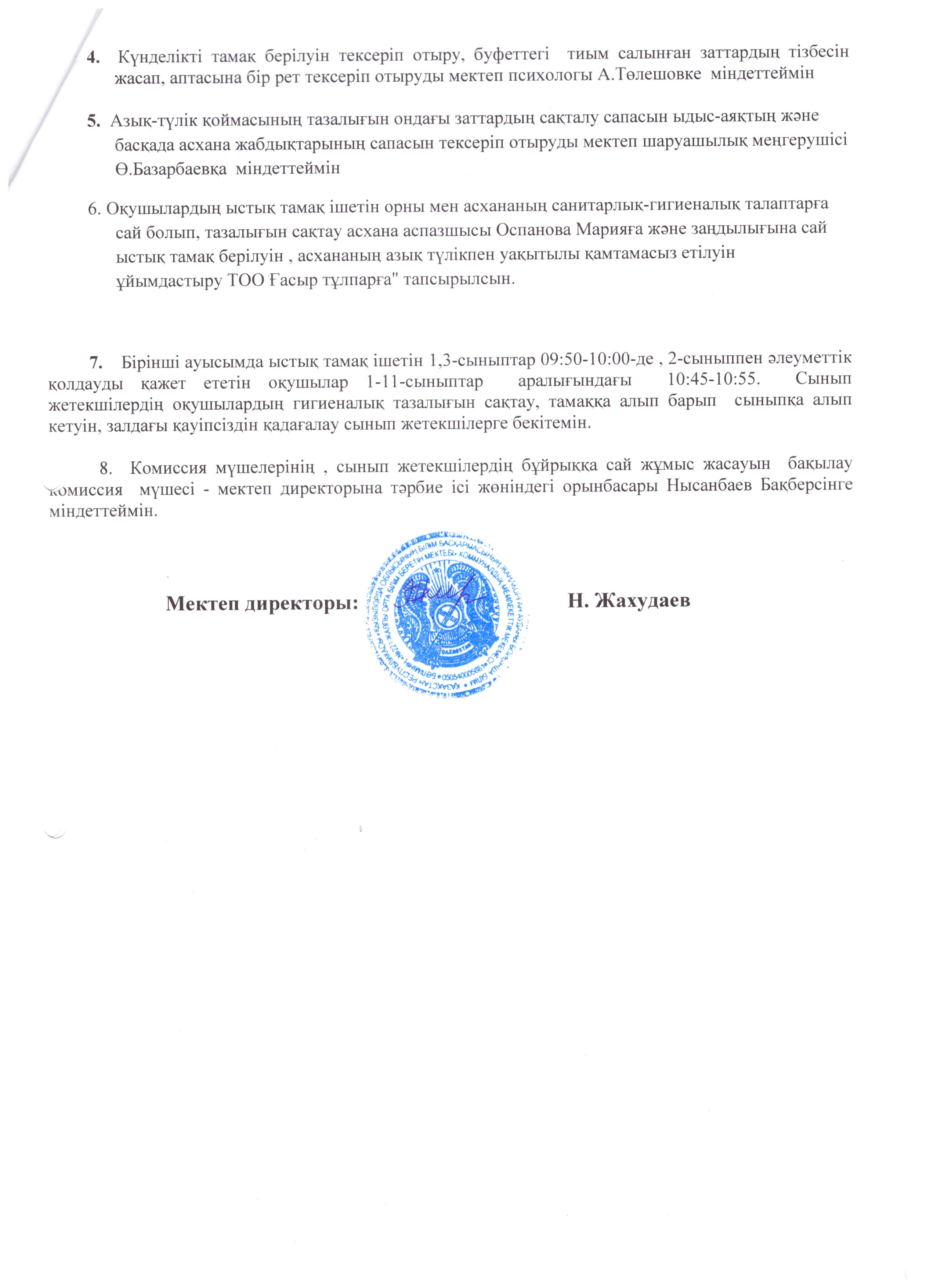 Мектепте тамақтандыруды бақылау комиссиясын құру туралы