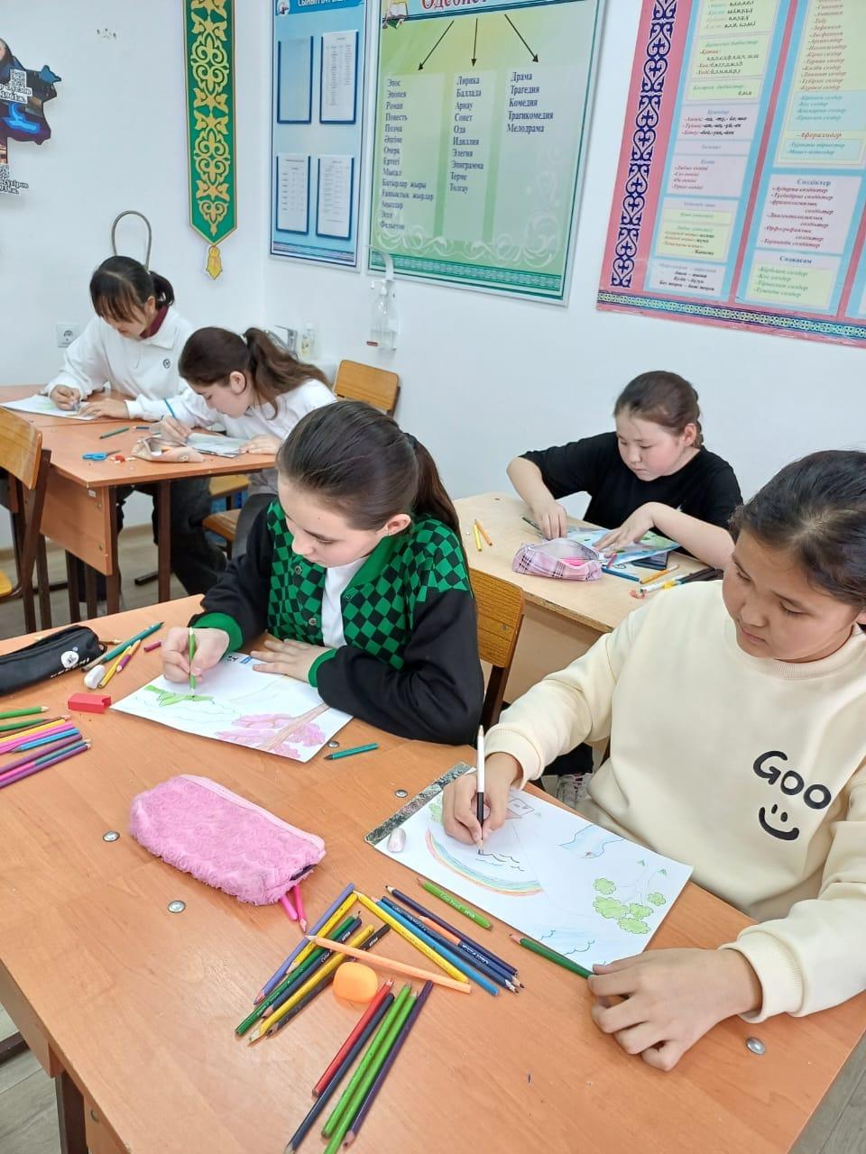 №221 жалпы орта білім беретін мектебінде "Өнер - өрге жетелейді" атты көркем еңбек пәні апталығының жоспарына сәйкес 14 ақпан күні 5-9-сыныптар арасында "Жас суретшілер" байқауы өткізілді. Байқау барысында оқушылар табиғат бейнесін қағаз бетіне түсірді.