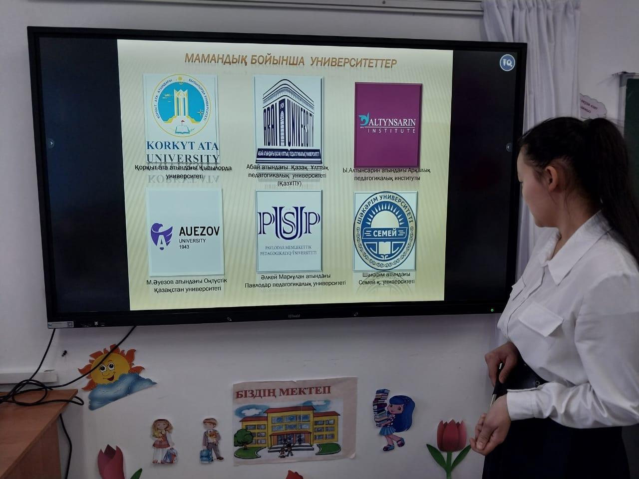 № 221 жалпы орта білім беретін мектебінде 28.02.2024 жылы директордың бейінді істері жөніндегі орынбасары Г.Сейтованың ұйымдастыруымен "Мамандықтар әлемін ашамыз" республикалық форумының мектепішілік (іріктеу) кезеңі өткізілді. Аталмыш шараға 11-17 жас аралығындағы 8 оқушы қатысты. "Мамандық таңдау- маңызды іс " десек те, оқушылардың өзі таңдаған мамандығы жайлы ізденісі, қызығушылығы бізді қуанта білді. Білім алушыларымыз "Мен мамандықты... таңдаймын", "Жас мобилограф" номинациялары бойынша өз жұмыстарын жақсы қорғап, ең жақсы жұмыстарды әділқазылар алқасы аудандық кезеңге ұсынды.Байқауға оқушыларды дайындауға белсене қатысқан А.Алдабергенова, М.Байдулла, М.Бердіхожаева, Б.Нұрмышев сынды сынып жетекшілердің еңбегін ерекше атап, еңбектеріне шығармашылық табыс тілейміз. Мектепішілік іріктеу кезеңі қорытындысында