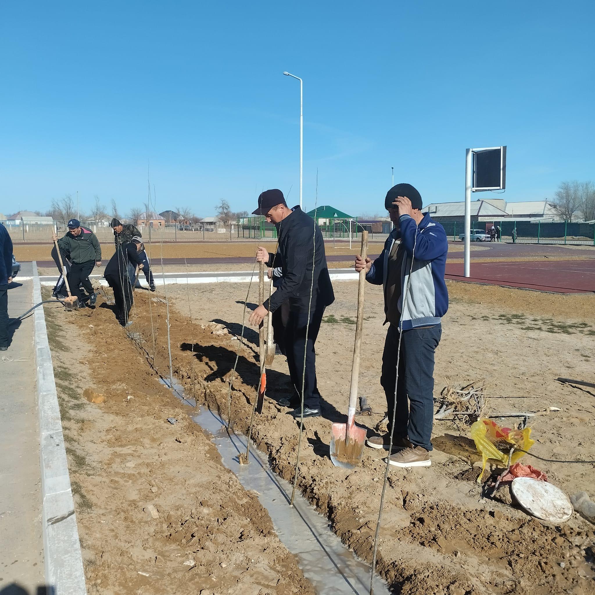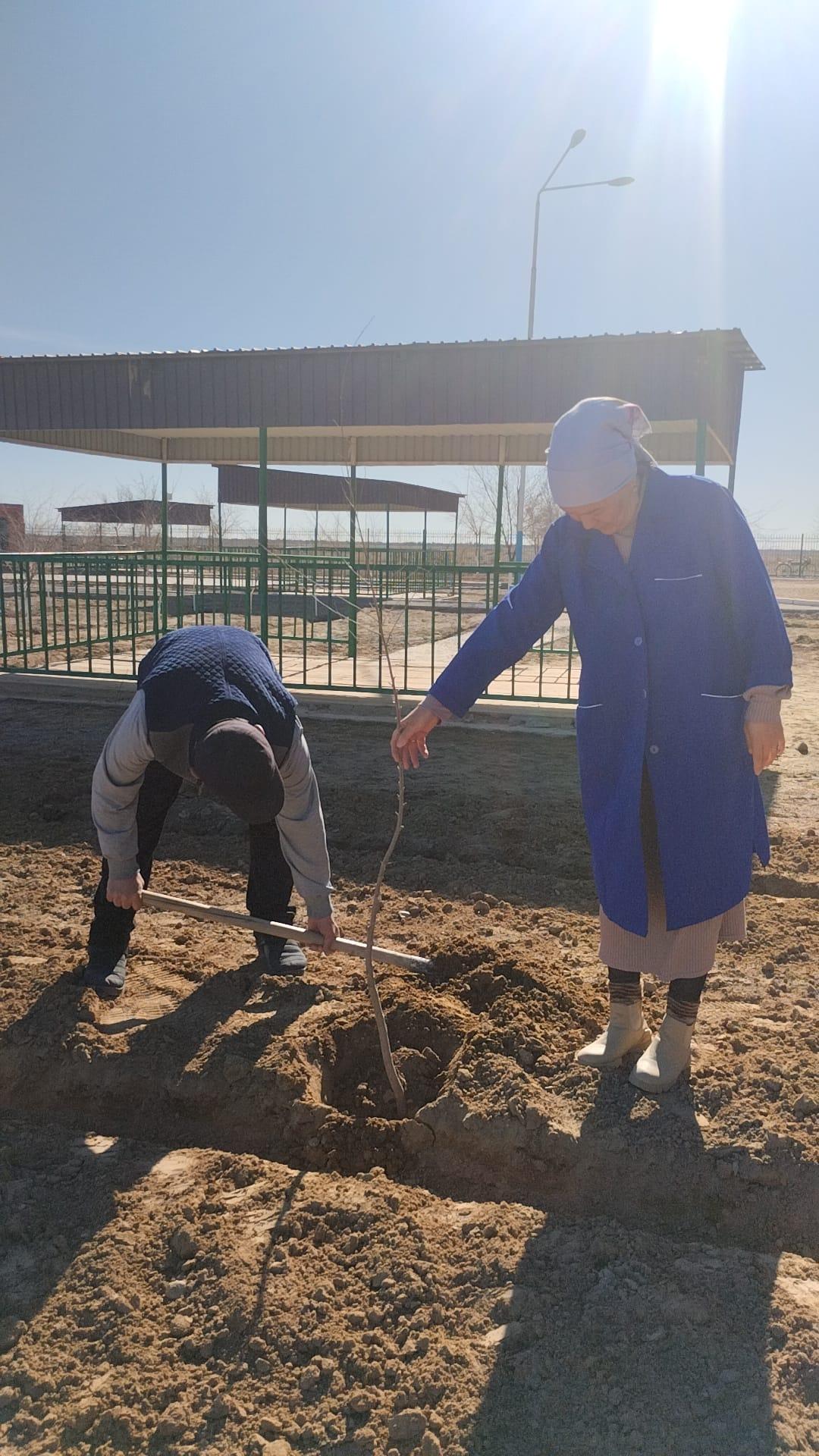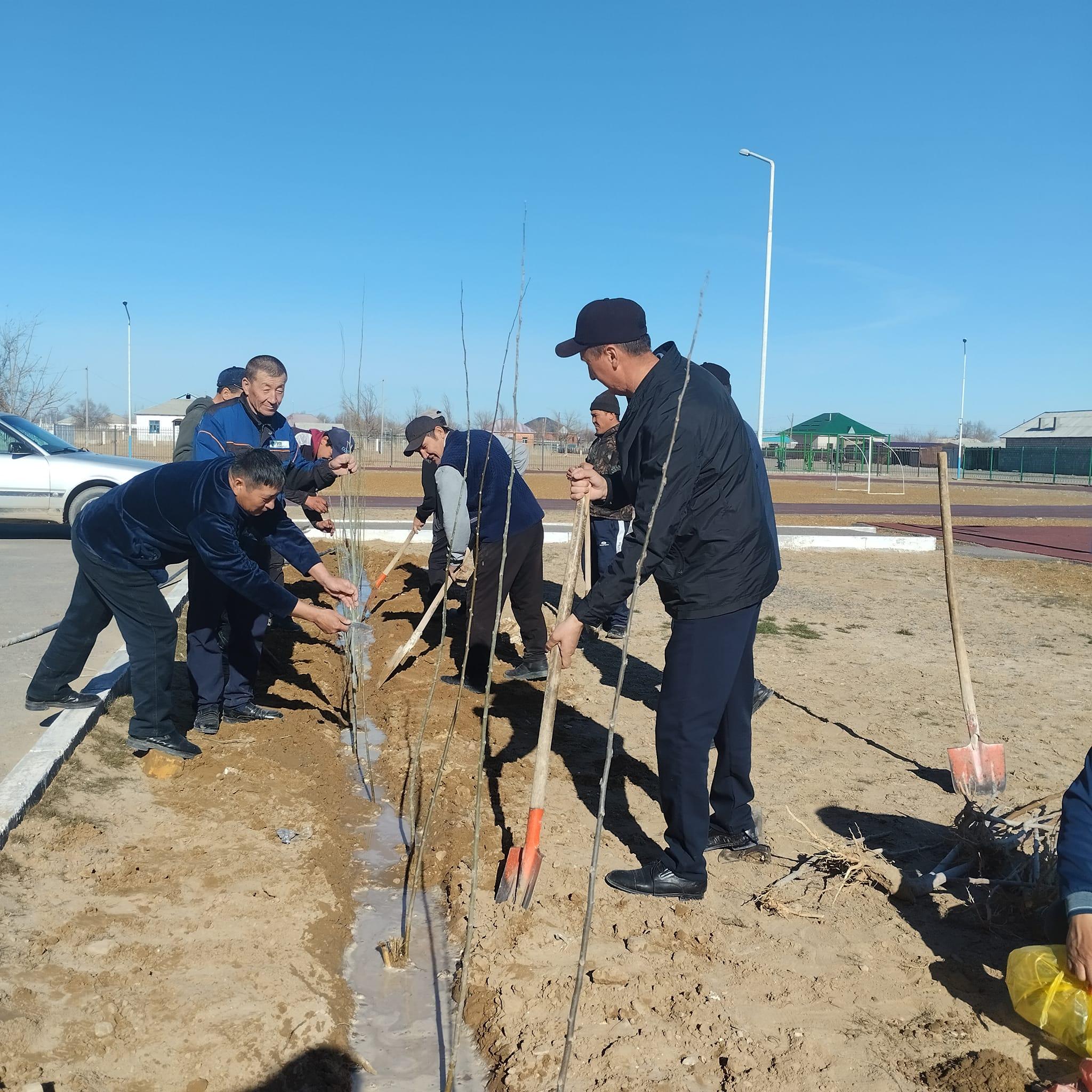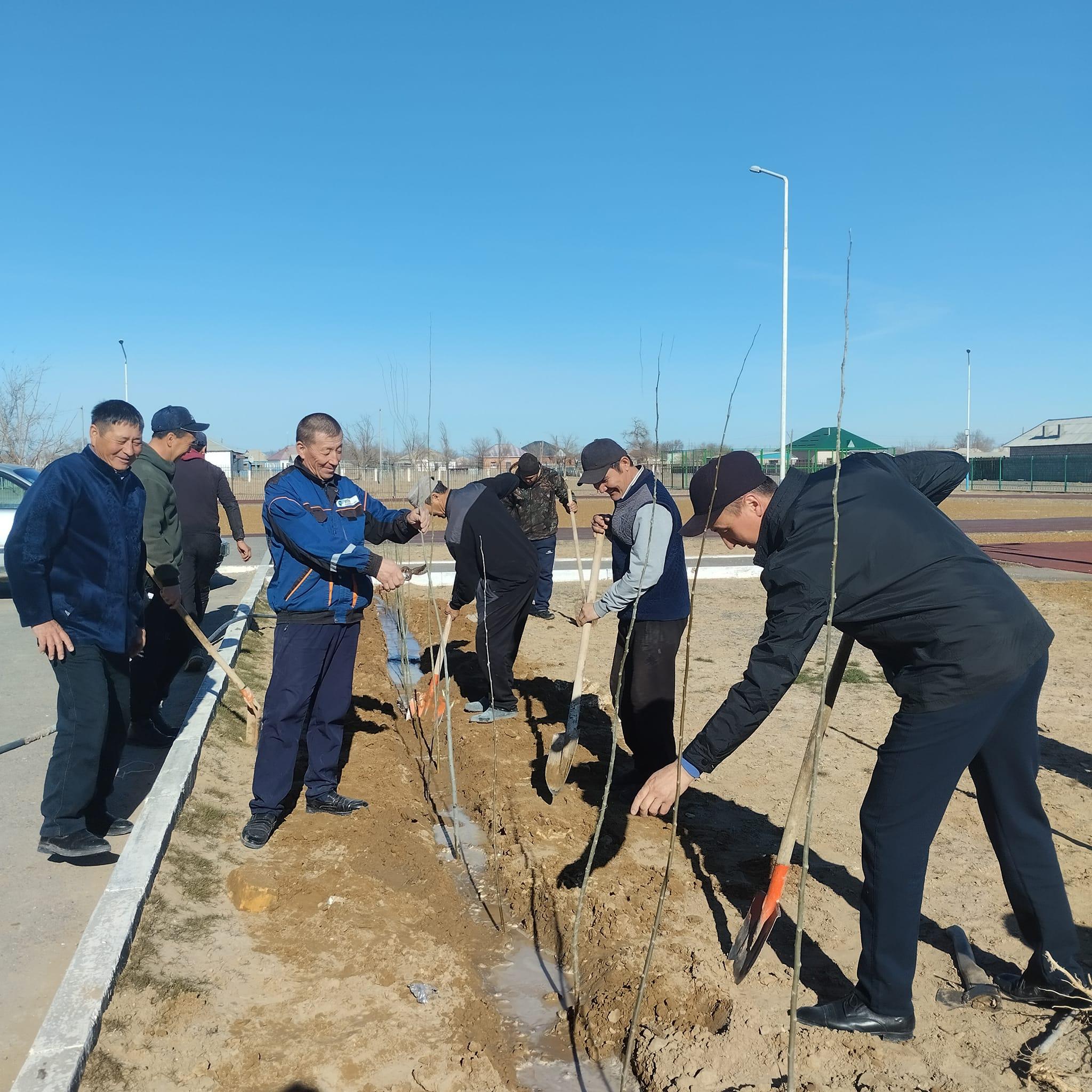Мектеп ұжымы тал, терек, қара ағаш көшеттерін әкеліп шараға белсене атсалыстып, көшеттер отырғызды