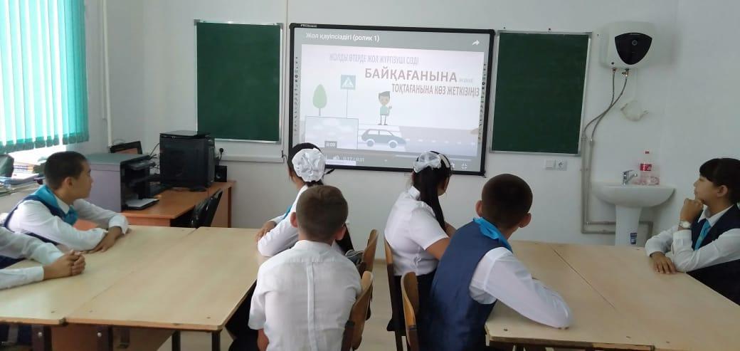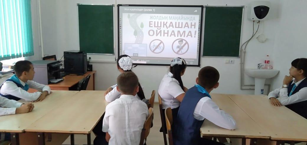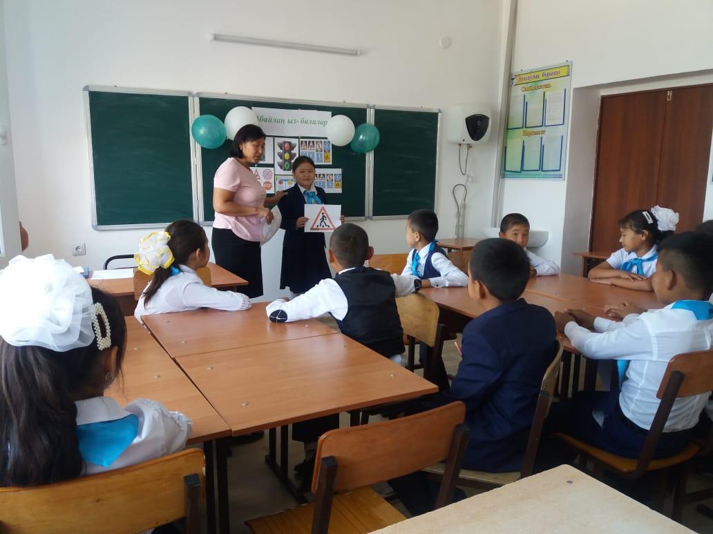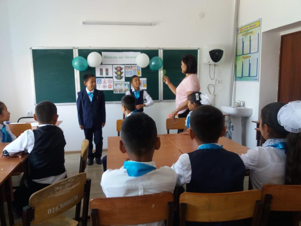Мектебімізде 2019 жылдың 6 қыркүйегінде 1-9 сыныптар арасында «Абайлаңыз,балалар» атты тәрбие сағаты болып өтті. Жол белгілерін білу, жолда жүру ережелерін сақтау мақсатында ұйымдастырылған тәрбие сағатында балалар жолда жүру қауіпсіздігі жайлы біраз мағлұматтар алды.