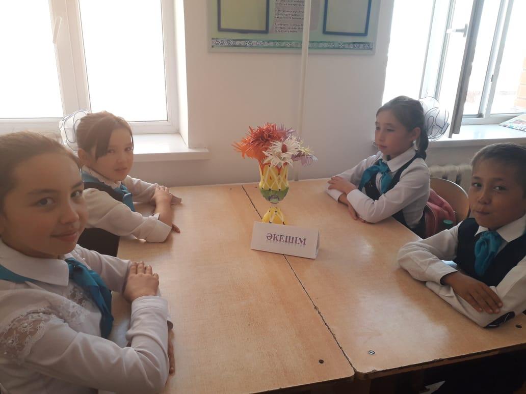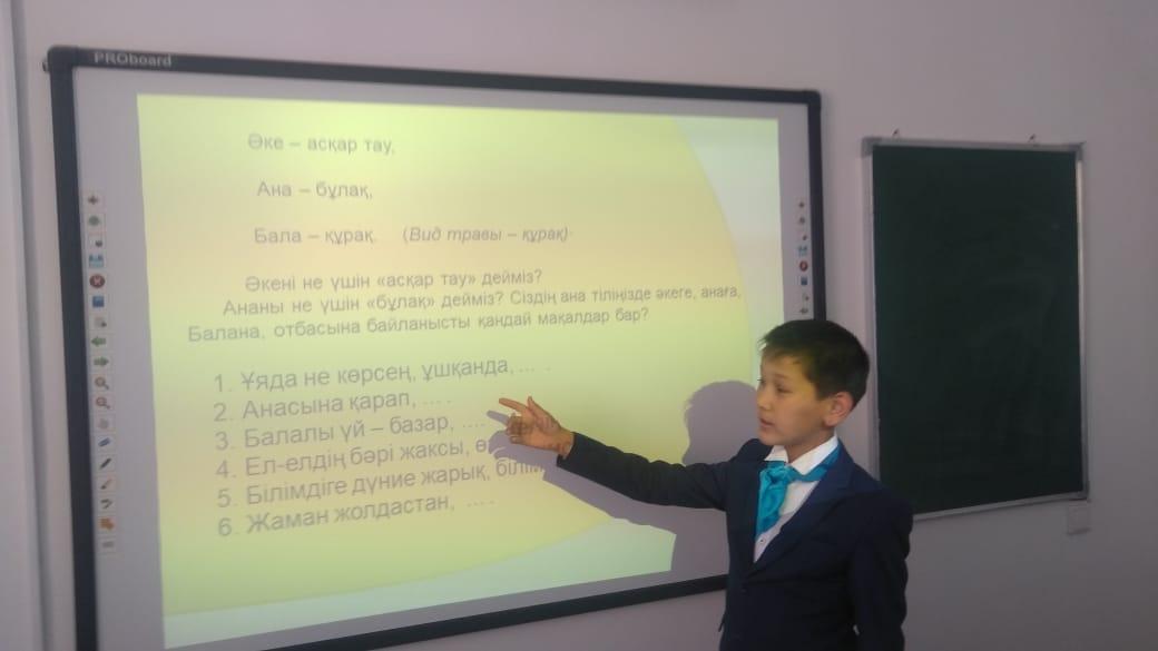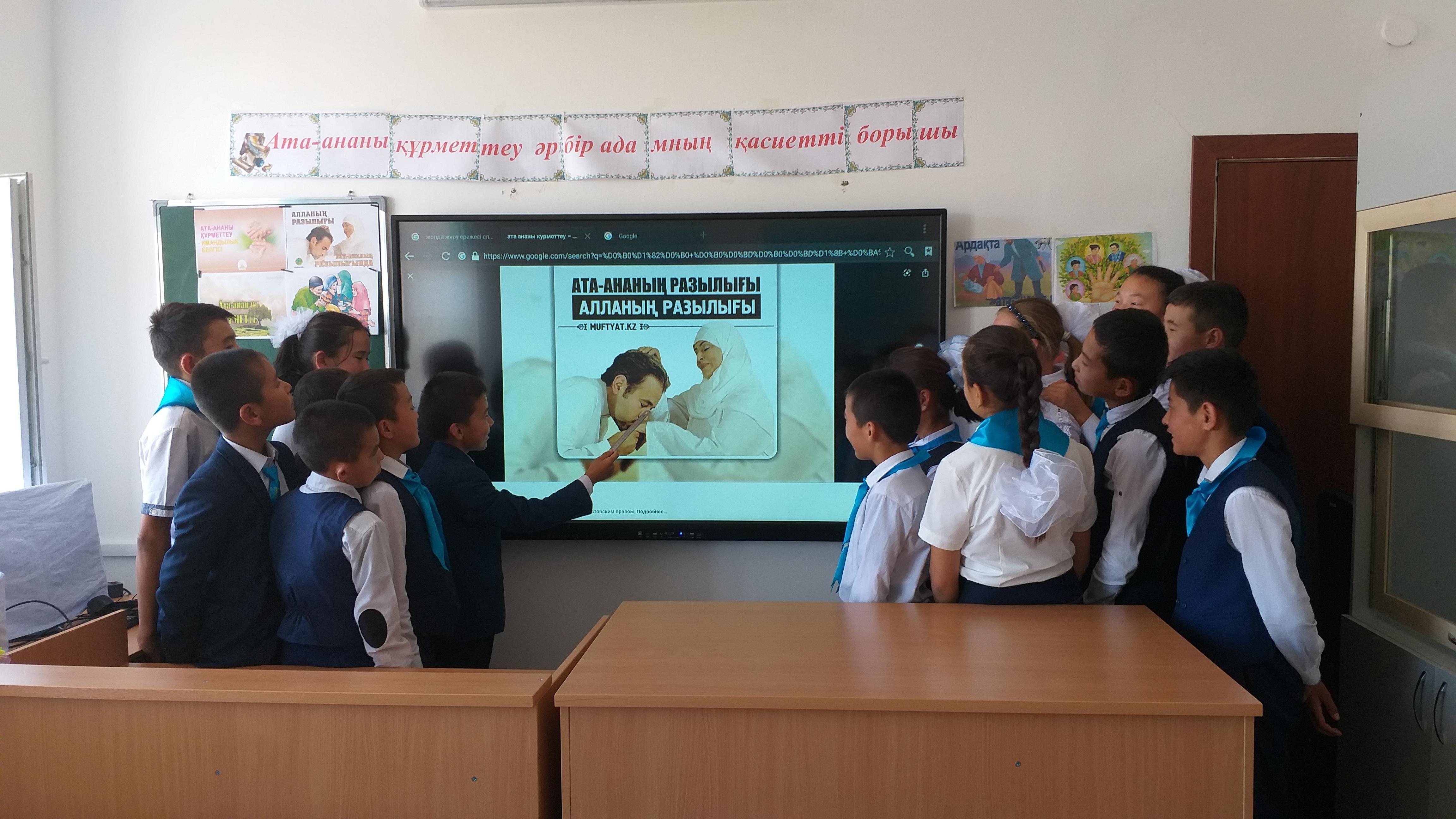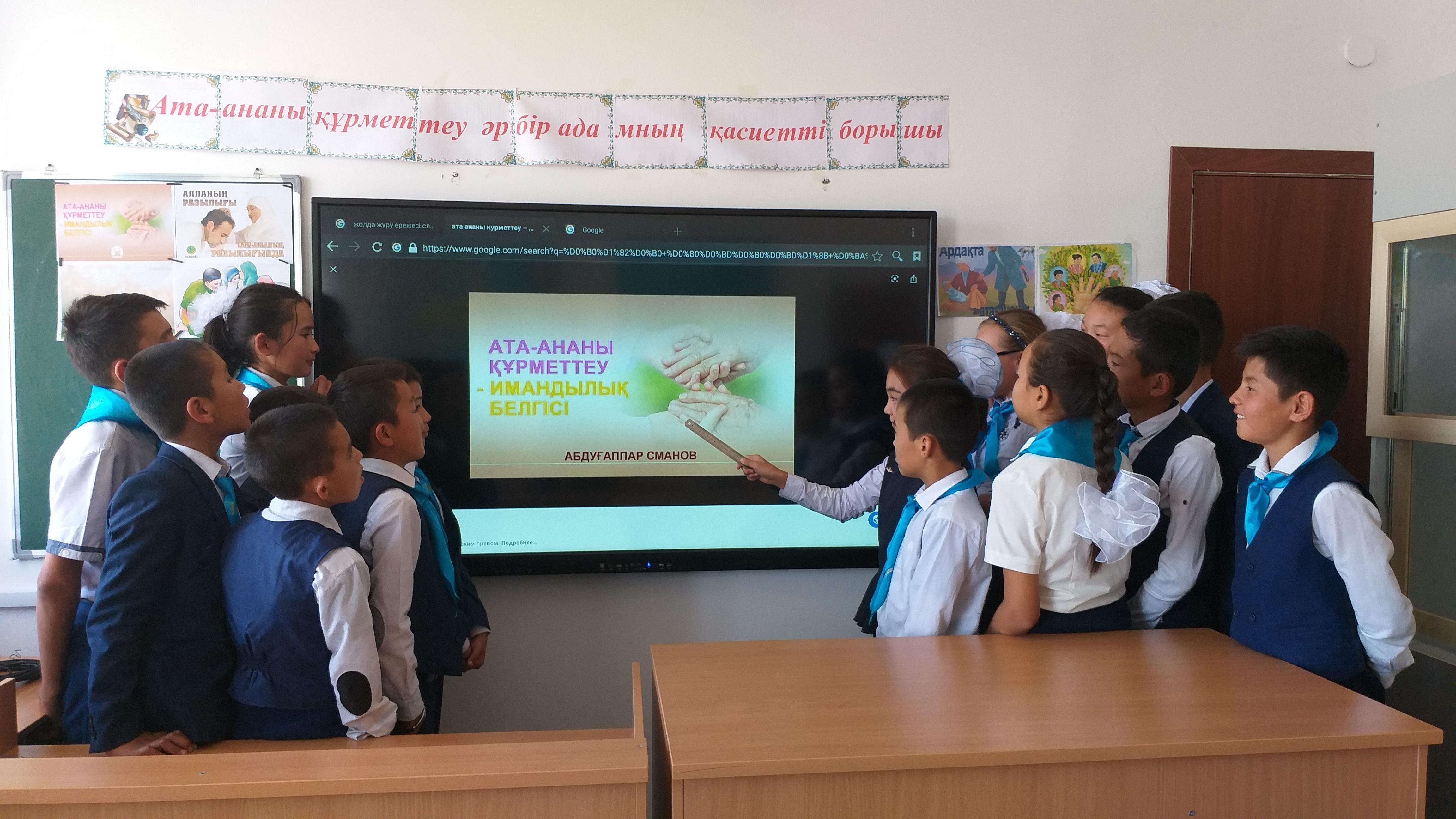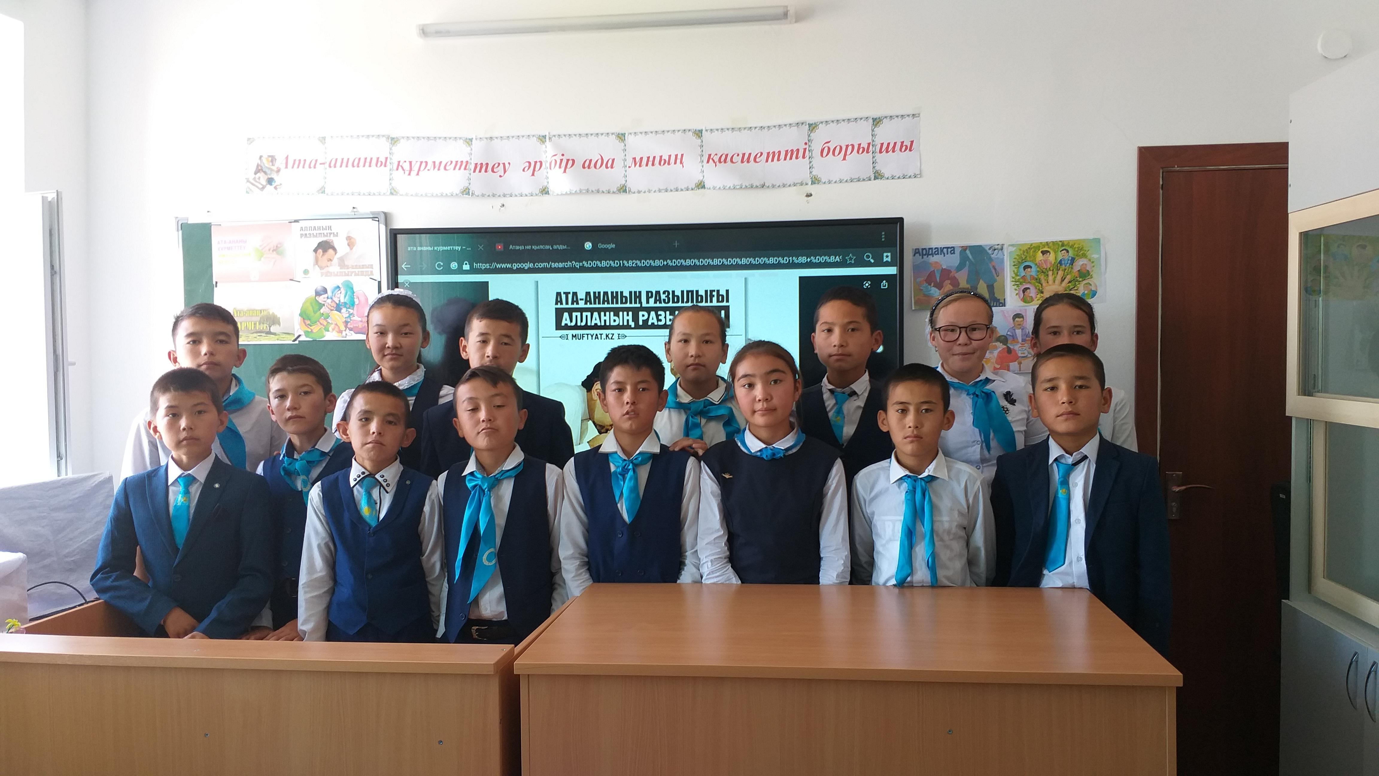 2019 жылдың 13 қыркүйегі күні барлық сыныптарда аудандық білім бөлімінің қатынасына сәйкес, «Ата-ананы құрметтеу – әрбір адамның қасиетті борышы» тақырыбында тәрбие сағаты болып өтті. Оқушылардың отбасы, жанұя туралы білімдерін шыңдай түсу, отбасы құндылықтарының маңызын дәріптеу,отбасын, отбасы мүшелерін құрметтеуге, сыйлауға тәрбиелеу мақсатында ұйымдастырылған іс–шараларға сынып оқушылары белсене қатысты. Тәрбие отбасынан басталады. Отбасының тірегі әлпештеген әке мен аялаған ана екендігі баса айтылды.