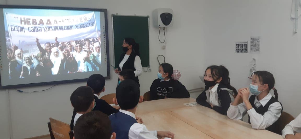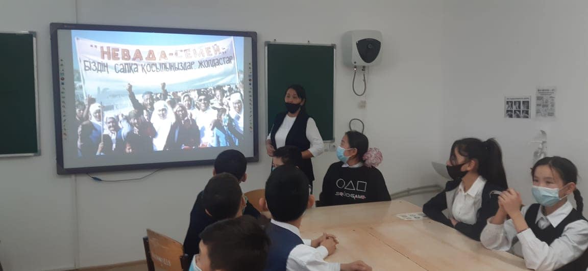 №221 негізгі білім беретін орта мектебінің 5-7 сынып оқушыларымен қазақ даласына үлкен қасірет әкелген Семей полигонының жабылғанына 30 жыл толуына орай "Семей ядросына 30 жыл" атты дөңгелек үстел ұйымдастырылды. Мақсаты: "Невада-Семей қозғалысының саяси мән- мағынасын ашу,Семей ядролық сынақ полигонындағы қатерлі қару зардабы жайлы мағлұмат беру.