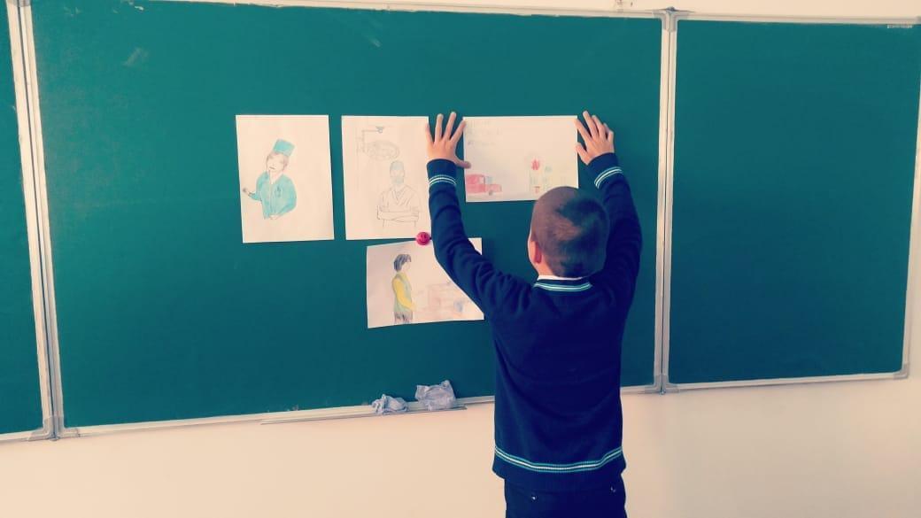 21 негізгі орта мектебінде "Кім боласың?" тақырыбында 1-4-сыныптар аралығында сурет көрмесі ұйымдастырылды. Оқушыларға мамандықтар жайлы алғашқы түсінік қалыптастыру, мамандықтың түрлері жайлы түсінік беру мақсатында ұйымдастырылған шараға оқушылар үлкен қызығушылық танытты. Кәсіби бағдар беру жөніндегі орынбасар:М.Бердихожаева