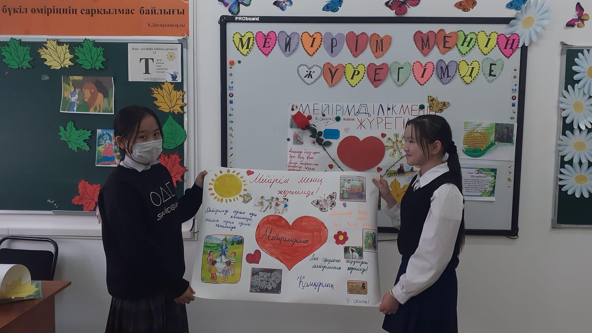 2 ақпан 2022 жылы N221 негізгі орта мектебінде өзін-өзі тану пәні мұғалімі Сейтова Гулзаданың ұйымдастыруымен "Өзін-өзі тану: Сүйіспеншілік пен шығармашылық педагогикасы" атты онкүндік жоспарына сәйкес 7-9-сынып оқушылары арасында "Мейірім -менің жүрегімде" тақырыбында сурет салу байқауы өтті. Байқаудың мақсаты жас ұрпақтың шығармашылық және танымдық белсенділігін ынталандырып, балаларды сүйіспеншілік, ақиқат, дұрыс әрекет, ішкі тыныштық, қиянат жасамау- жалпыадамзаттық құндылықтарына бейімдеу, мейірімді, адал, қайырымдылыққа, кішіпейілділікке үйрету болып табылады. Оқушылар сурет байқауында плакаттарға топпен суреттер салып, соңында өз жұмыстарын қорғап шықты. Оқушылар шараға белсенді қатысты.