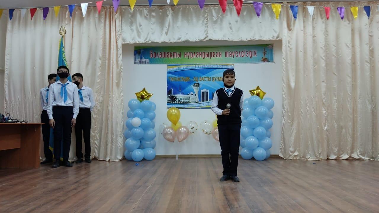 №221 негізгі орта мектебінде 26.11.2021 ж "Мемлекеттік рәміздер-тәуелсіздік символы" тақырыбында Б.Серібаева ұйымдастыруымен мерекелік кеш өткізілді. Мақсаты оқушыларды мемлекеттік рәміздерді қастерлеуге, туған жерін,елін, Отанын сүюге және тәуелсіз елдің білімді тәрбиелі жастары болуға баулу.