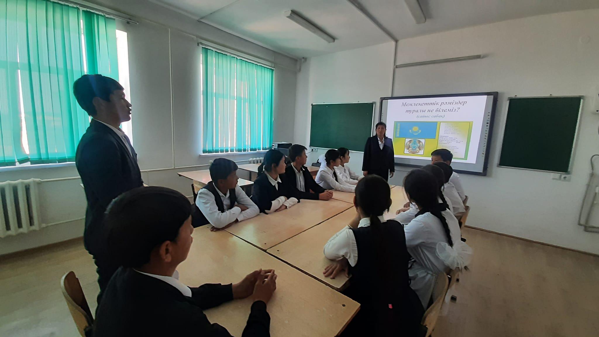 25 февраль 2022 0 1 2 3 4 5 Мемлекеттік рәміздер-мақтанышымыз №221 негізгі орта мектебінде 26.02.2022 ж "Мемлекеттік рәміздер-мақтанышымыз" тақырыбында сынып сағаттары болып өтті. Мақсаты оқушыларға Мемлекеттік рәміздерді құрметтеуге, қастерлеуге тәрбиелеу.