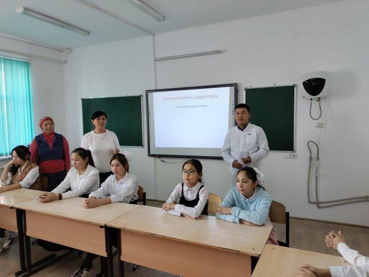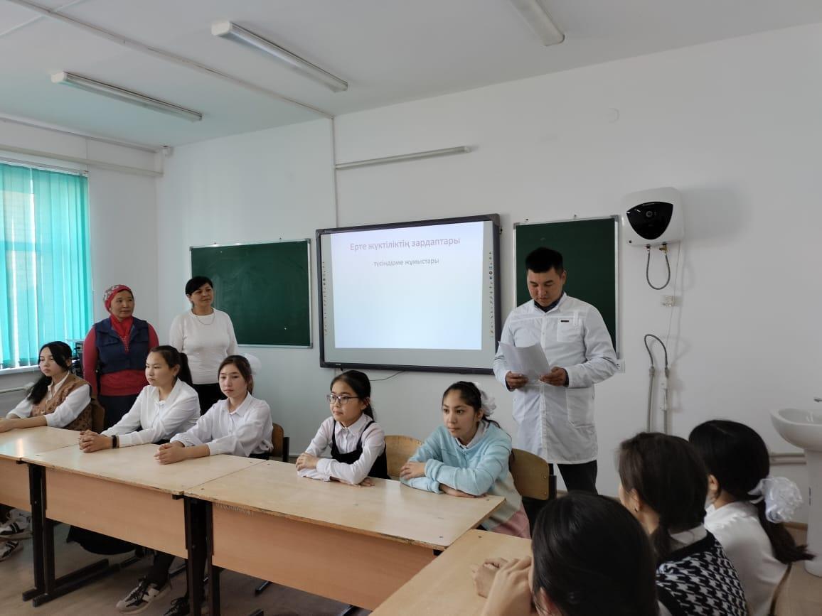Ерте жүктіліктің зардабы мен зияны турасында баяндалып, артынан туындайтын қиындықтар жайлы толыққанды түсіндірілді. Ойнап жүріп от басып қалмау үшін ең алдымен жастардың санасында ақыл мен парасат орнауы тиіс. Жастардың білімқұмар болып, жақсылыққа құштарлығын арттыру жолында көп бағдарламалар іске қосылуда. Жастар қоғамның қозғаушы күші болғандықтан оларға артылар жүкті сезіндіру маңызды,- деді мектеп педагог-психолог Г. Сейтова мен бірге қыздар ұйымның жетекшісі А. Алдабергенова