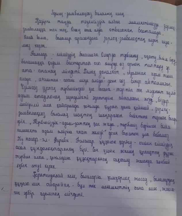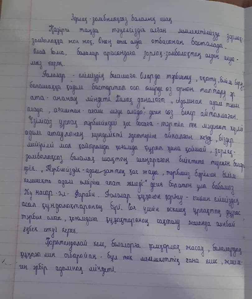 Зорлық -зомбылықсыз балалық шақ "атты эссе байқауы