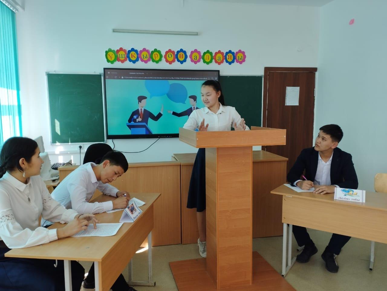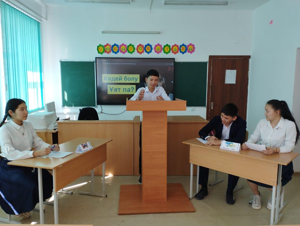 17 февраль 2023 0 1 2 3 4 5 "Ұшқыр ой алаңы" № 221 мектебімізде "Ұшқыр ой алаңы" мектеп оқушыларының дебаттық қозғалысы жоспары бойынша мектебіміздің 9-10сынып оқушылары арасында жоспарға сай "Кедей болу ұят деп есептейді" тақырыбында дебат ойыны өткізілді.