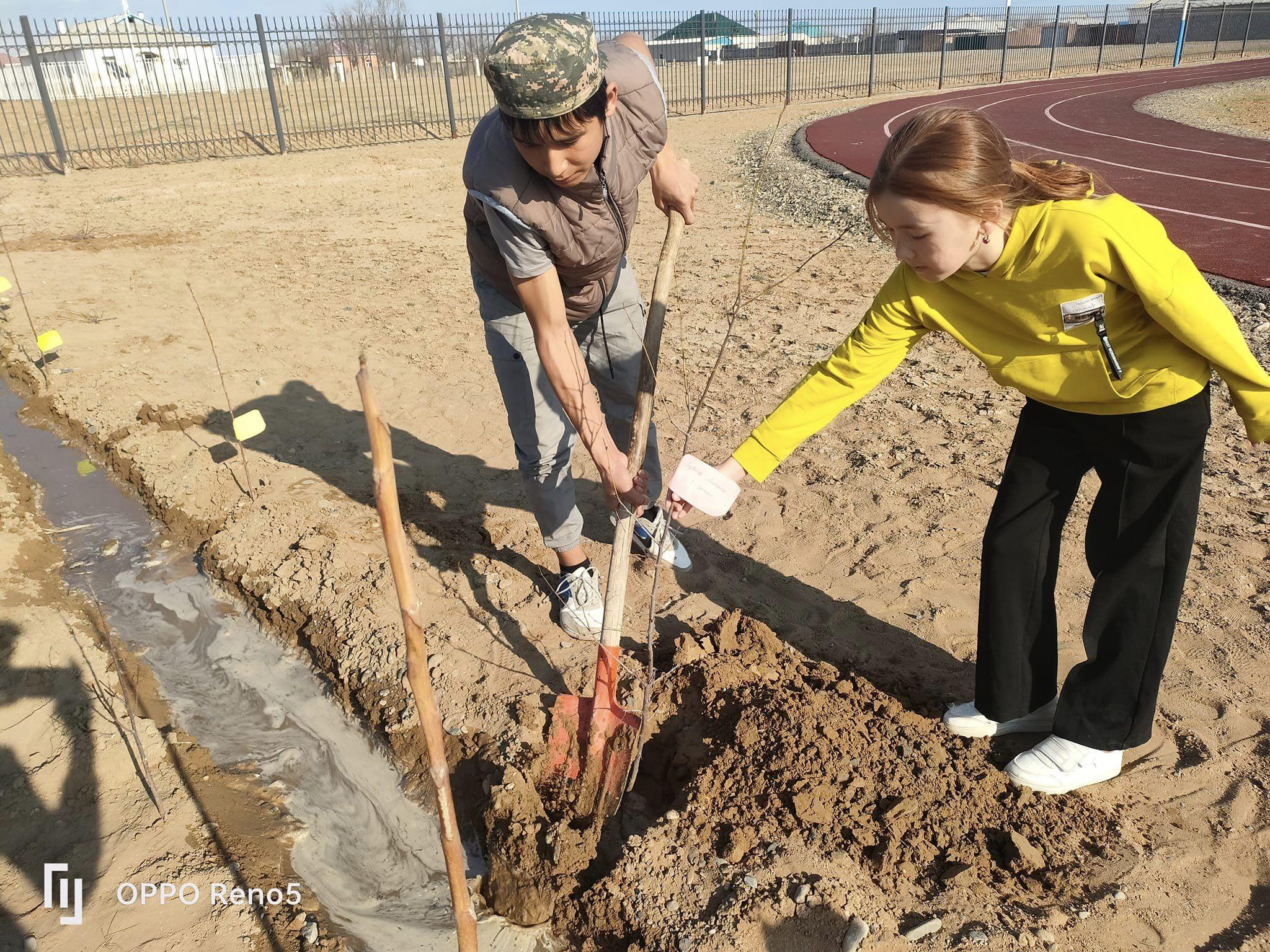 Осыған орай мектебімізде "Менің ағашым" мектеп ауласын көгалдандыру акциясы және Наурыз мейрамын мерекелеуге арналған іс-шара жоспарына сай "Жасыл үй" челленджі бойынша мектеп оқушылары ата-ана, ұстаздарымен бірге өз ағаштарын отырғызды.