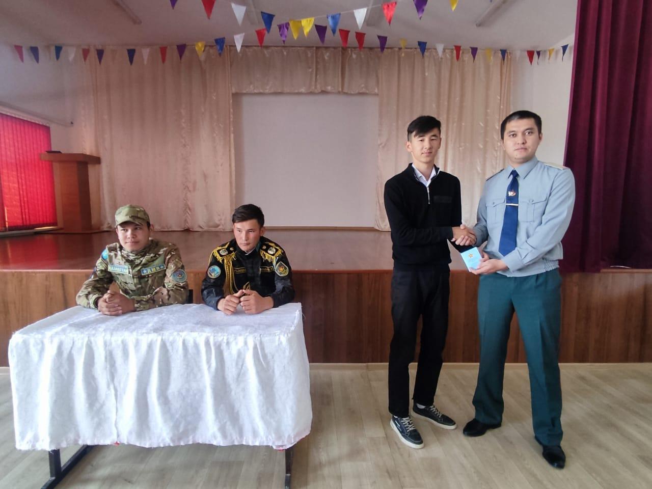 №221 жалпы орта білім беретін мектебінің АӘТД пәнінің мұғалімі Б. Нұрмышовтың ұйымдастыруымен 2021-2022 жылы Ақтау қаласы Әуе қорғанысы күштері, әуе шабуылына қарсы қорғаныс күштері №51809 әскери бөлімінде Отан алдындағы борышын өтеп келген ауылымыздың қос азаматы Назарбекұлы Заманбек және Өмірзақ Бекзатты шақырып, оқушылармен кездесу ұйымдастырды. Кездесу барысында оқушыларға патриоттық маңызы бар әңгімелер жүргізіліп, Отан алдындағы борышын өтеу әрбір азаматтың міндеті екендігі түсіндірілді. Сонымен қатар, кездесу барысында АӘТД пәні мұғалімі Б.Нұрмышов мектебіміздің 2006 жылы туылған оқушылары Бегалы Бейбарыс пен Ізбасар Нұрсұлтанға Қазақстан Республикасы Қорғаныс министрлігінің "Әскерге шақыру учаскесіне тіркеу туралы" куәлігін табыстады.
