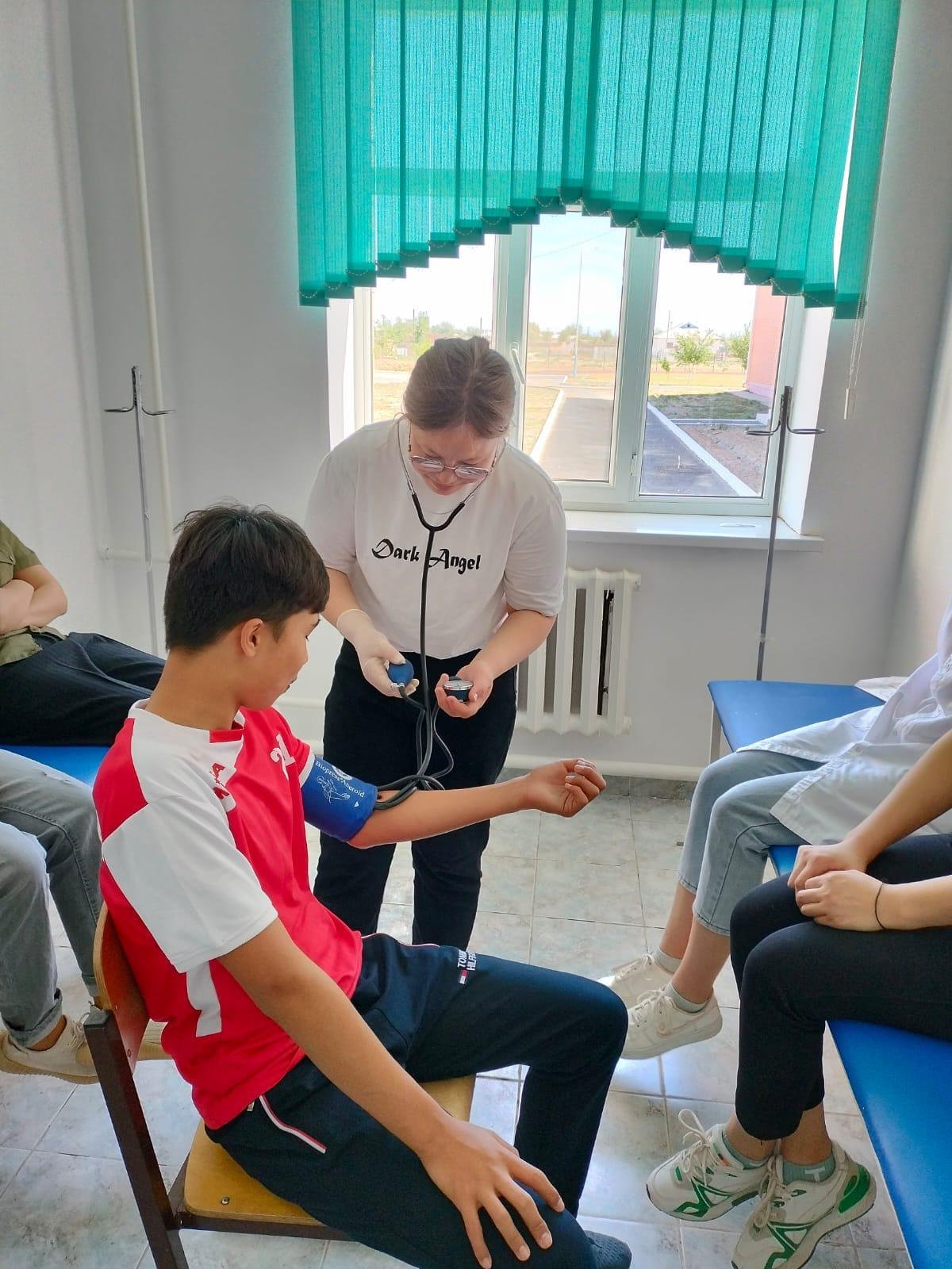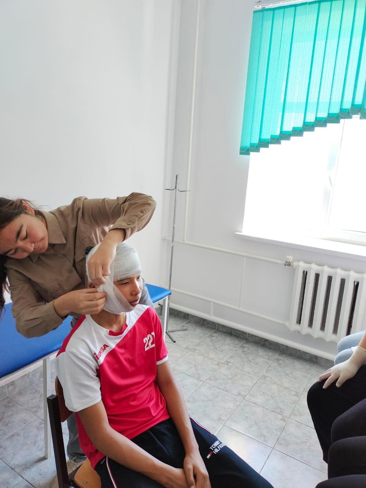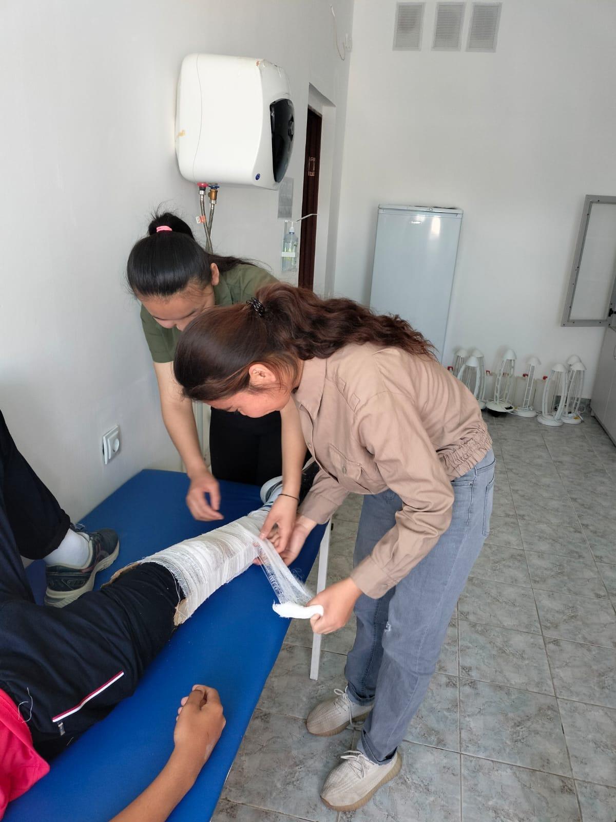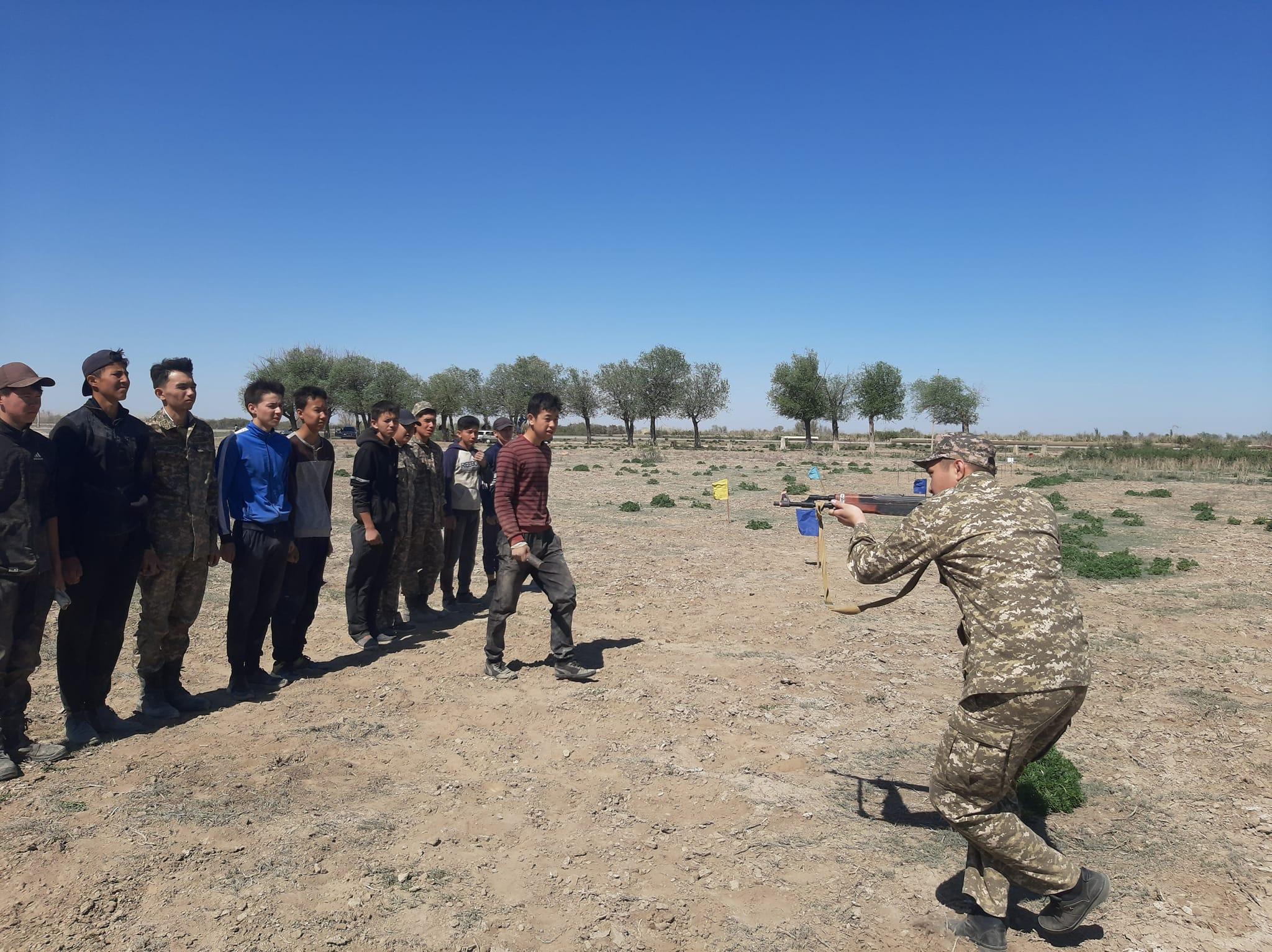 Қ.Р Қорғаныс министірлігінің Бастапқы әскери дайындық қағидаларын бекіту туралы 2017 жылғы 12 шілдедегі #347 бұйрығына сәйкес оқу жаттығу далалық (лагерлік) жиындарды өткізу мақсатында және Жаңақорған ауданының қорғаныс істері жөніндегі бөлімінің 2023 жылғы 11 сәуірдегі # 27 бұйрығына сәйкес мектебіміздің АӘТД пән мұғалімі-ұйымдастырушысы Б.Нұрмышов 10 сынып оқушыларына 24-28 сәуір аралығында оқу дала жаттығуын өткізсе, қыз балаларға мектеп дәрігері алғашқы көмек көрсетуді үйретті.