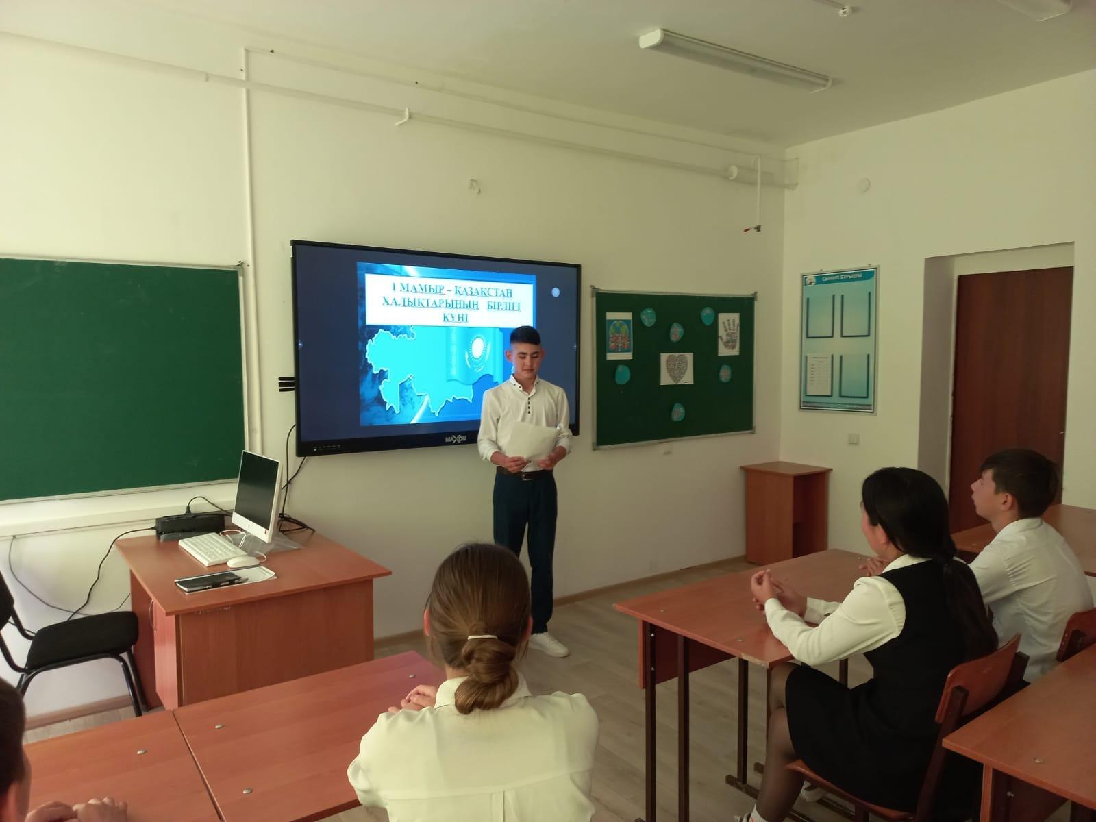 28 апрель 2023 0 1 2 3 4 5 1 мамыр - Қазақстан халқының бірлігі күні №221 жалпы орта білім беретін мектебінде 1 мамыр - Қазақстан халқының бірлігі күні мерекесіне орай "Ынтымақты елдің ырысы мол" тақырыбында тәрбие сағаттары өткізілді.