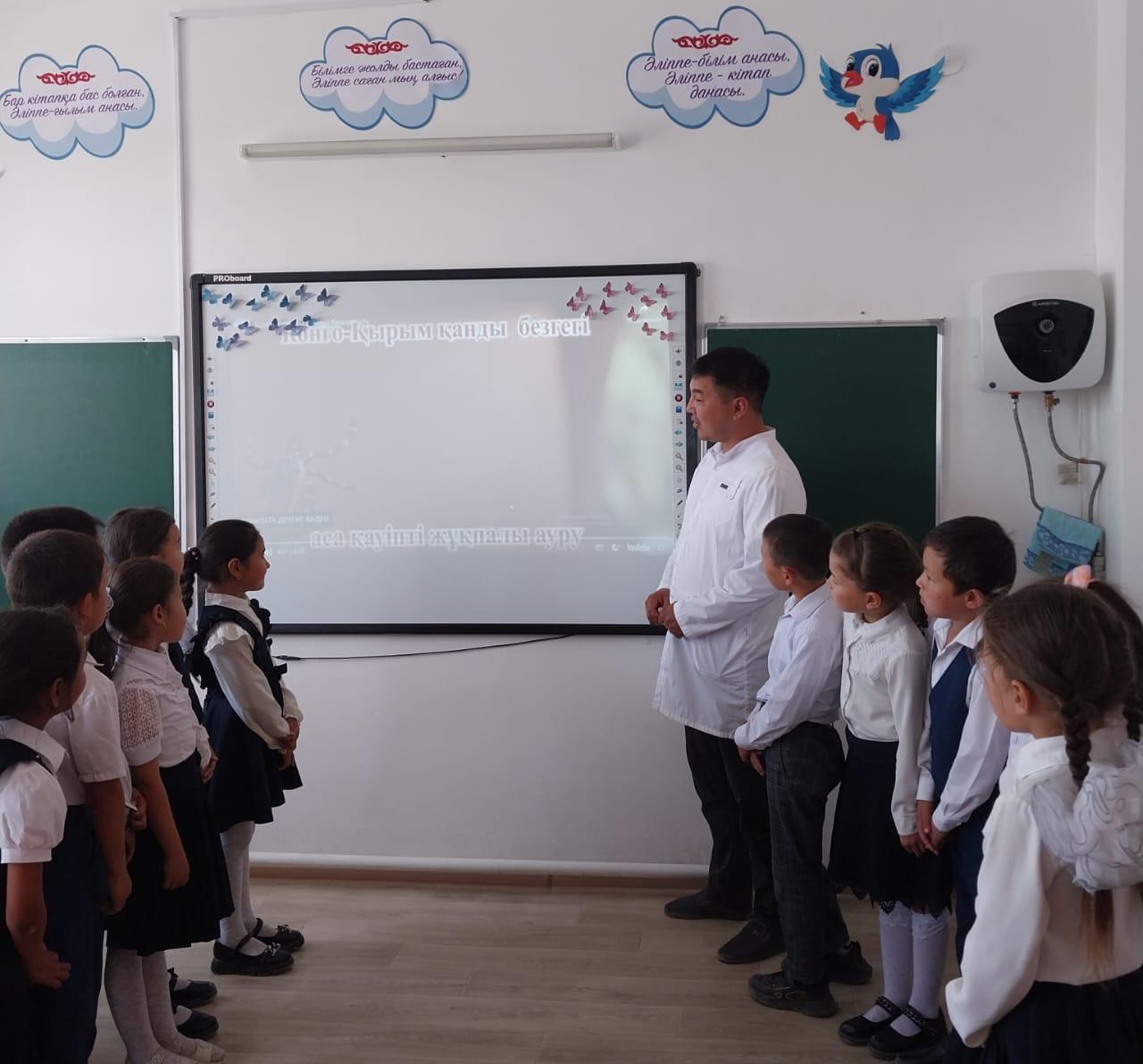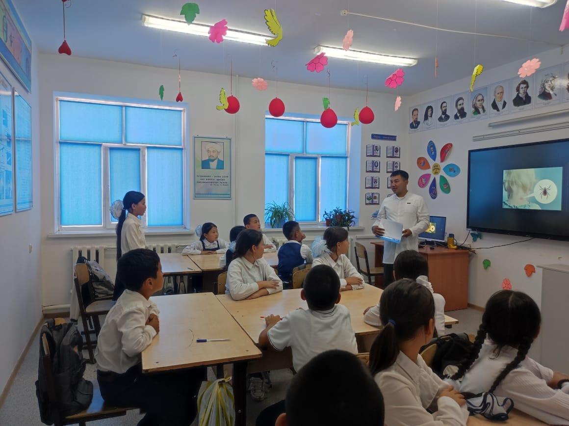 №221 жалпы орта білім беретін мектебінде "Конго-Қырым геморрагиялық қызбасынан сақтану" тақырыбында 1-10 сынып арасында ақпараттық түсіндірме жұмыстары жүргізілді.