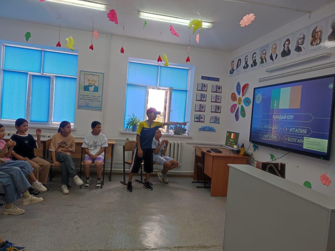 Жаттығудан соң, «Қазақстан қалалары» танымдық ойыны ойналды, ойынның мақсаты негізгі элементтер арқылы қаланың атауын табу. Бұл ойында балалар белсенділік танытты.
