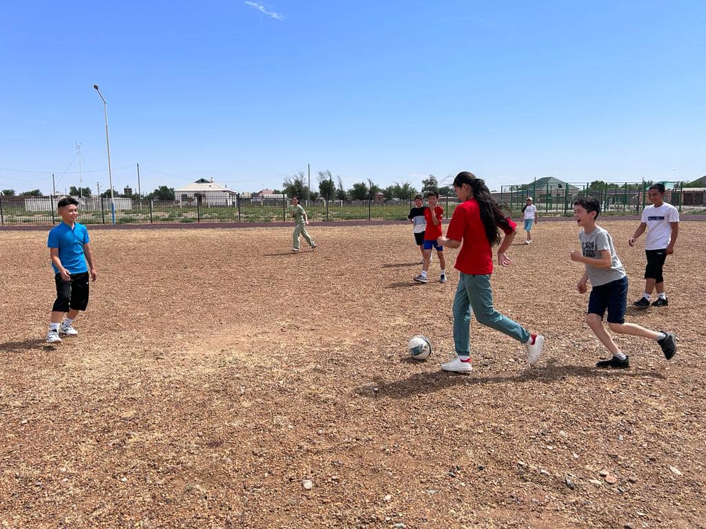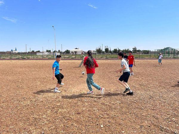 Спорт алаңда денешынықтыру пәнінің мұғалімі А.Қожатаевтың нұсқауымен футбол ойыны ойналды.