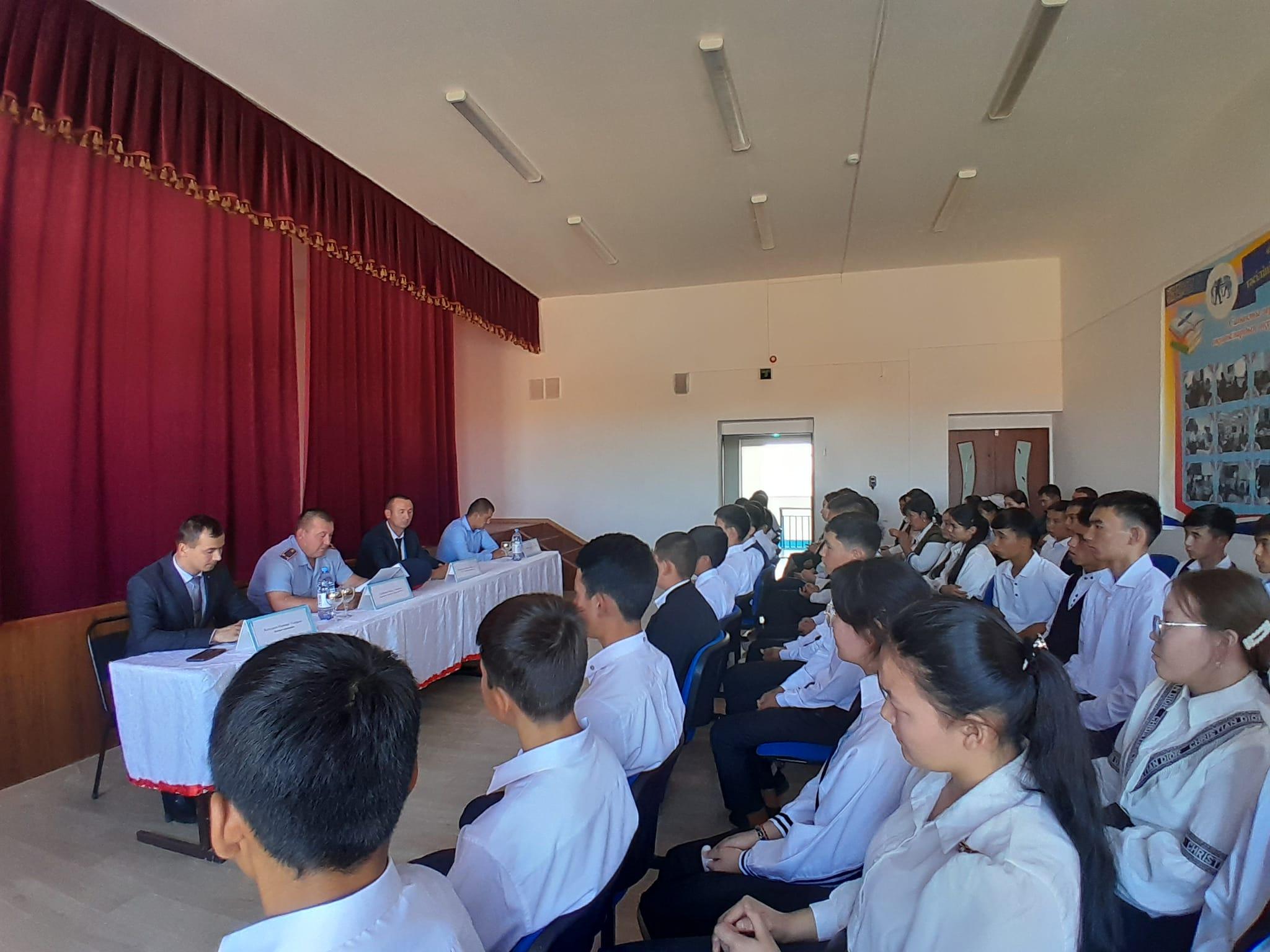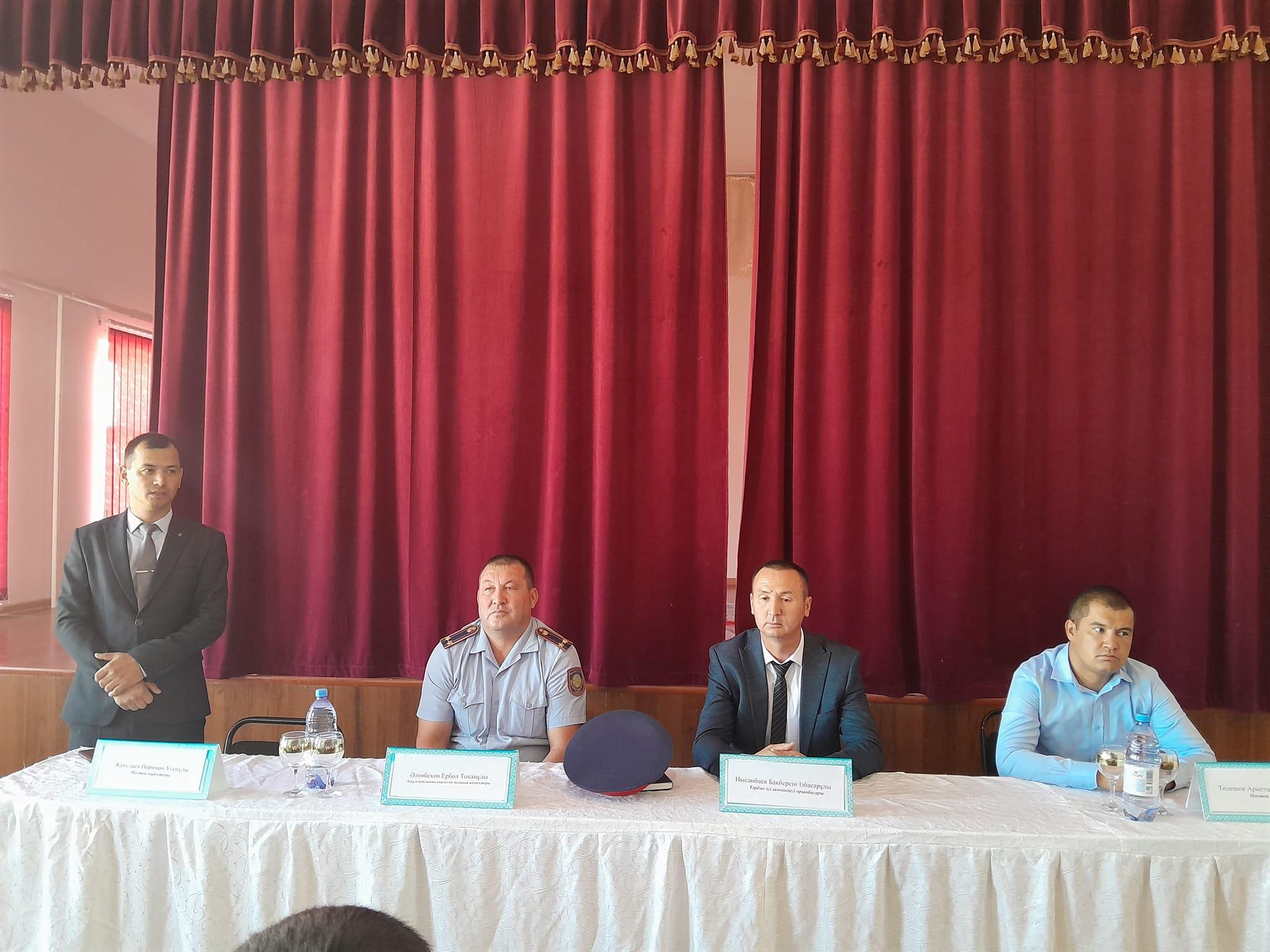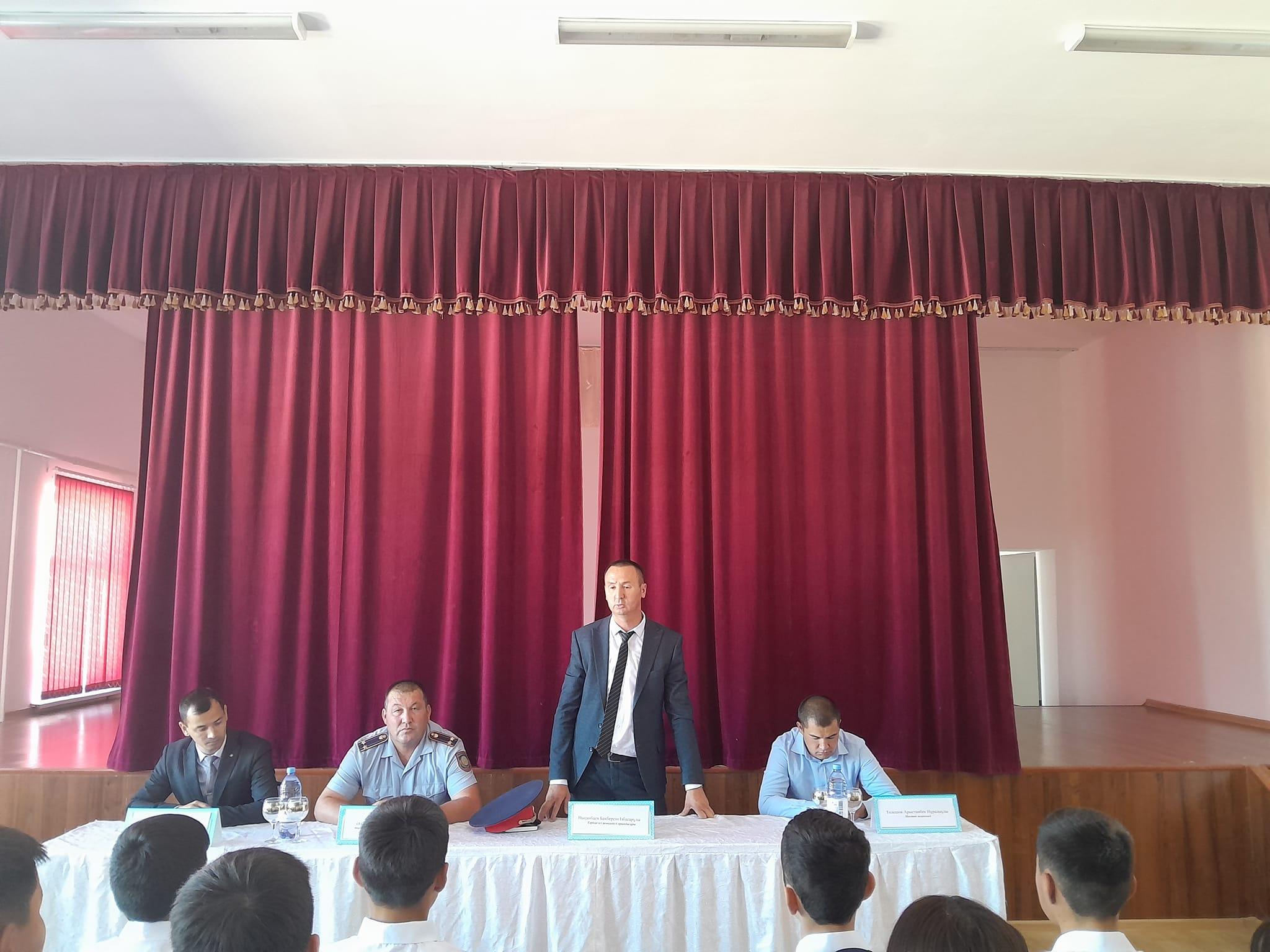 Құқық бұзушылықты алдын алу жөнінде жиналысты мектеп директоры Нариман Үсенұлы қазақтың біртуар азаматы, Кеңес одағының батыры Б.Момышұлының тәртіпсіз ел болмайды, тәртіпке бас иген құл болмайды деген сөзімен қорытындылады.