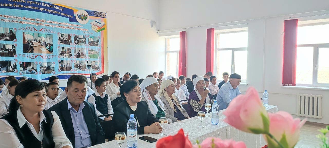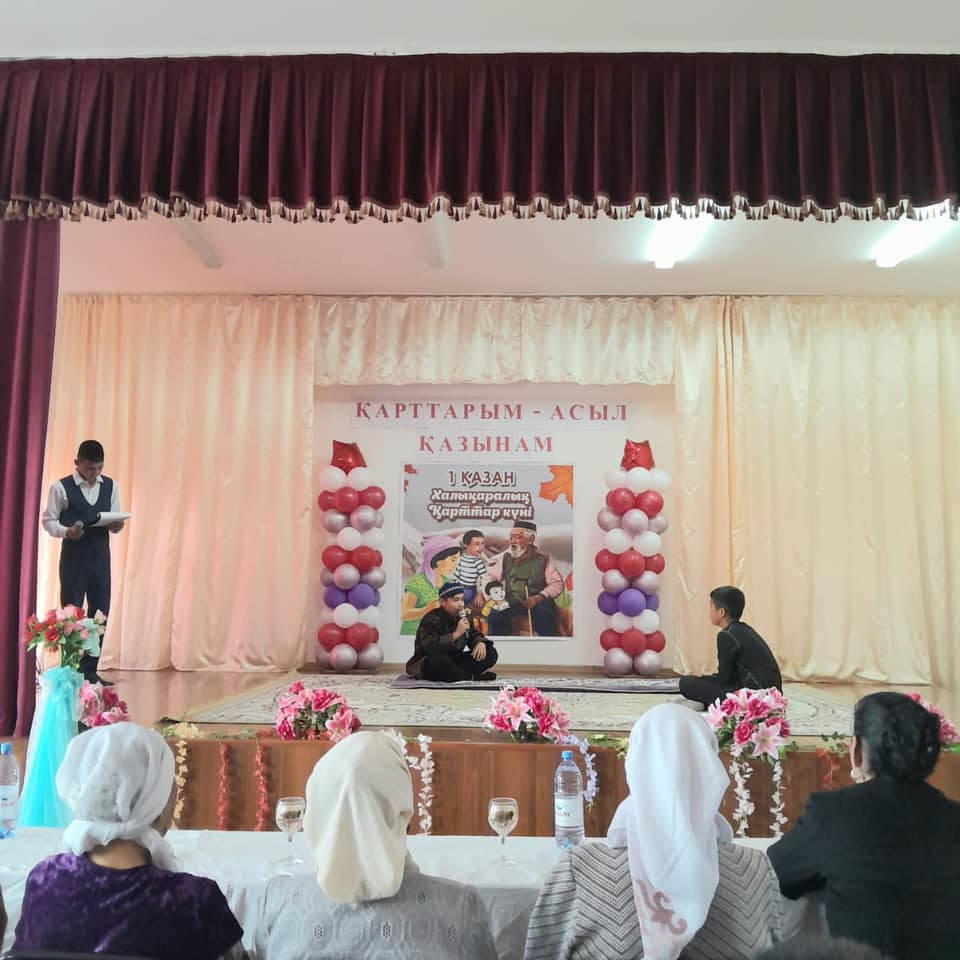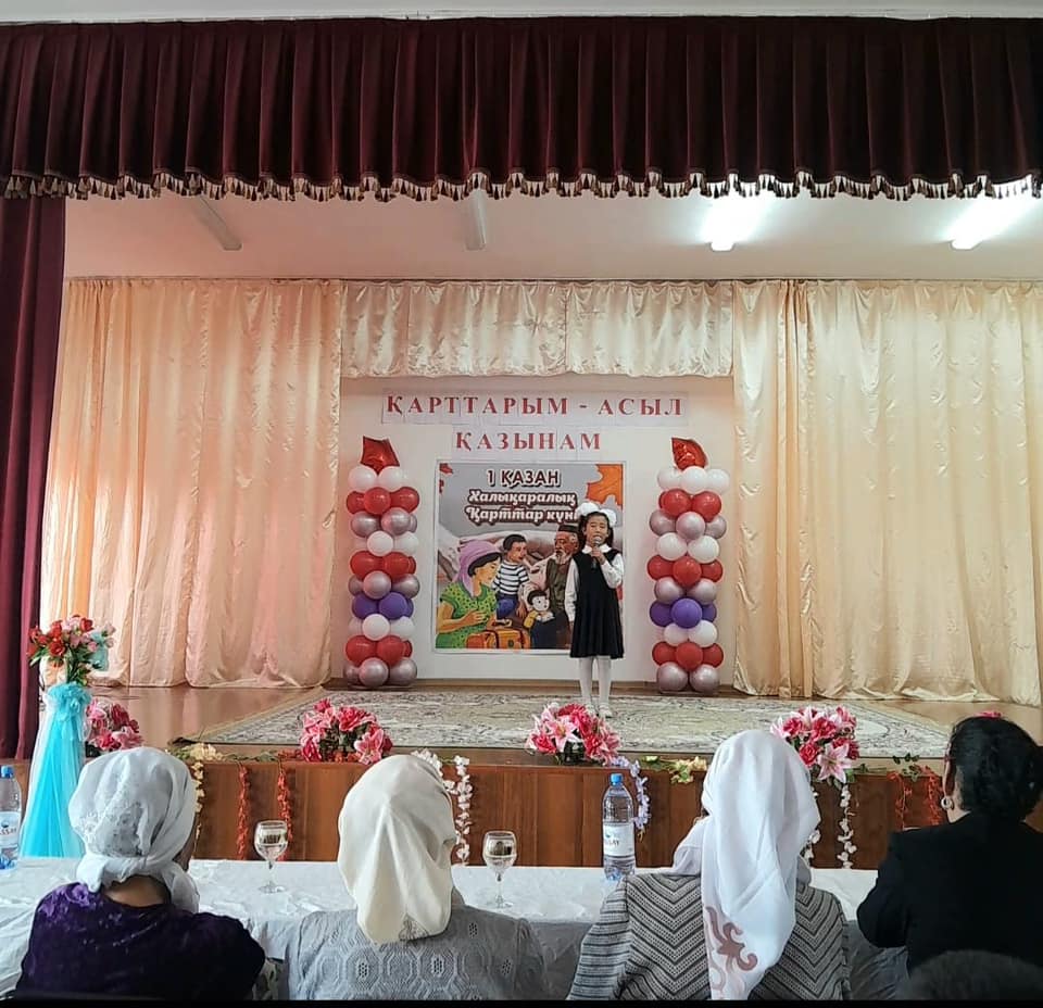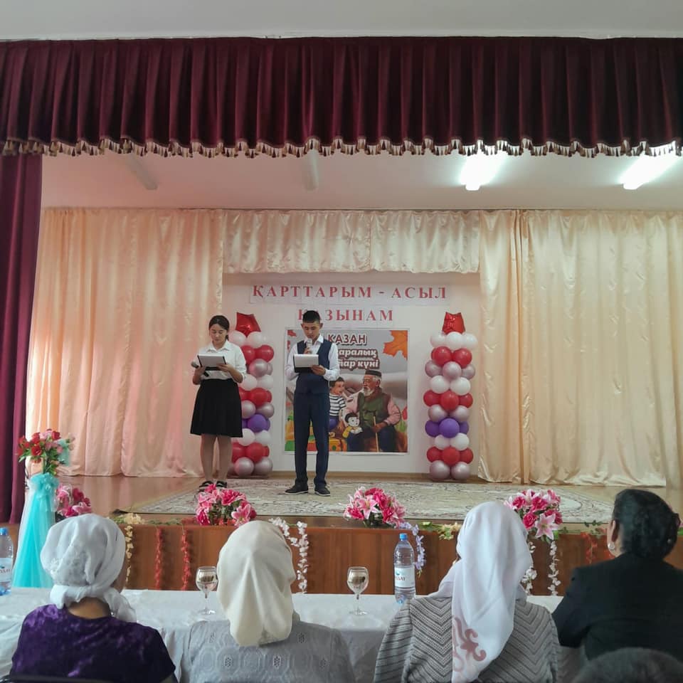 Қарияларымызға білім ордасының ұстаздары мен оқушылары әнмен қарсы алып, жыр шумақтарын арнап, жылы шыраймен құрмет көрсетті.