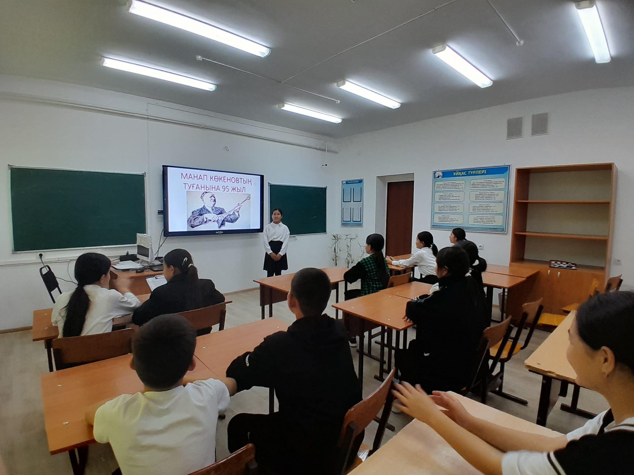 Бүгін №221 жалпы орта білім беретін мекетбінде «Оқуға құштар мектеп» жобасы аясында кітапханашы Б.Төлекбаева және аға тәлімгер Н.Темірханның ұйымдастыруымен «Сүйем сені туған өлкем» тақырыбында сыр дүлдүлі Манап Көкеновтың 95 жылдығына тақырыптық кеш болып өтті.
