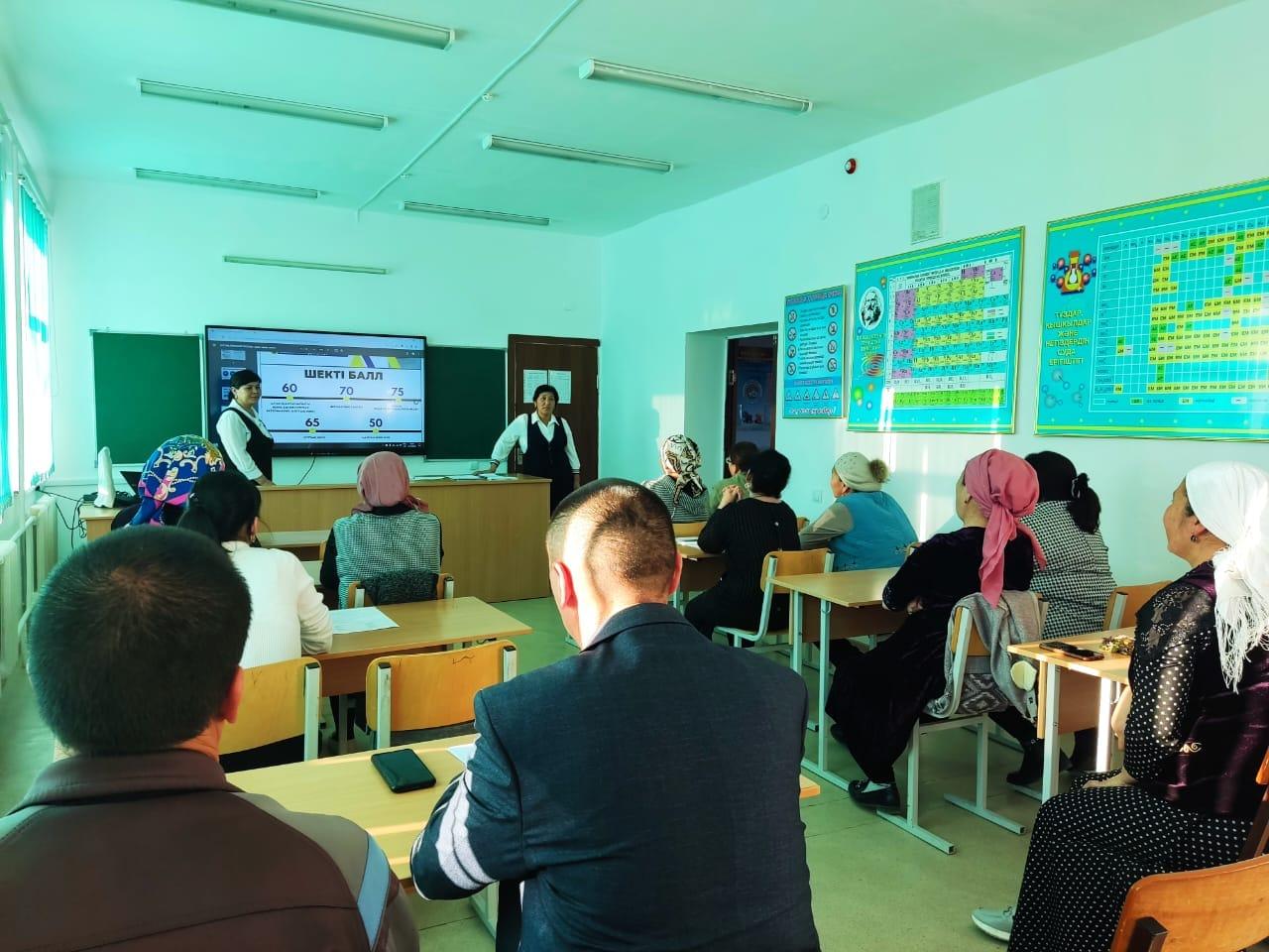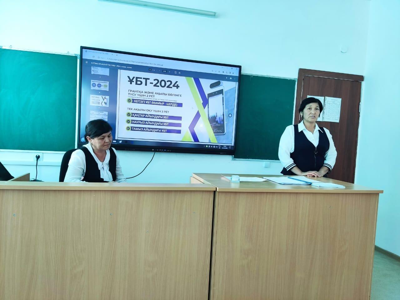 №221 жалпы орта білім беретін мектебінде бітіруші түлектердің ата-аналарымен жиналыс өтті. Мектеп директорының бейінді істер жөніндегі орынбасары Г.Сейтова жиналыс барысында оқушылардың ҰБТ-ға дайындықтың сынама нәтижелеріне талдау жасап, таңдау мамандықтарына тоқталды. Сонымен қатар 2023 жылғы ҰБТ қорытындылары, 2024 жылдағы бейіндік пәндер комбинациялары, тестке қатысушыны қолдау мақсатында жасалған жағдай, тест тапсырмаларының ерекшеліктері жайлы ата-аналарды ақпараттандырды. Аталмыш мәселе жөнінде пән мұғалімдері сөз алып, ҰБТ-ға дайындық барысы жайлы сөз қозғады. Ата-аналар да өз ойларымен бөлісті.