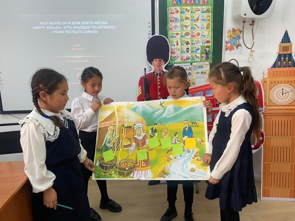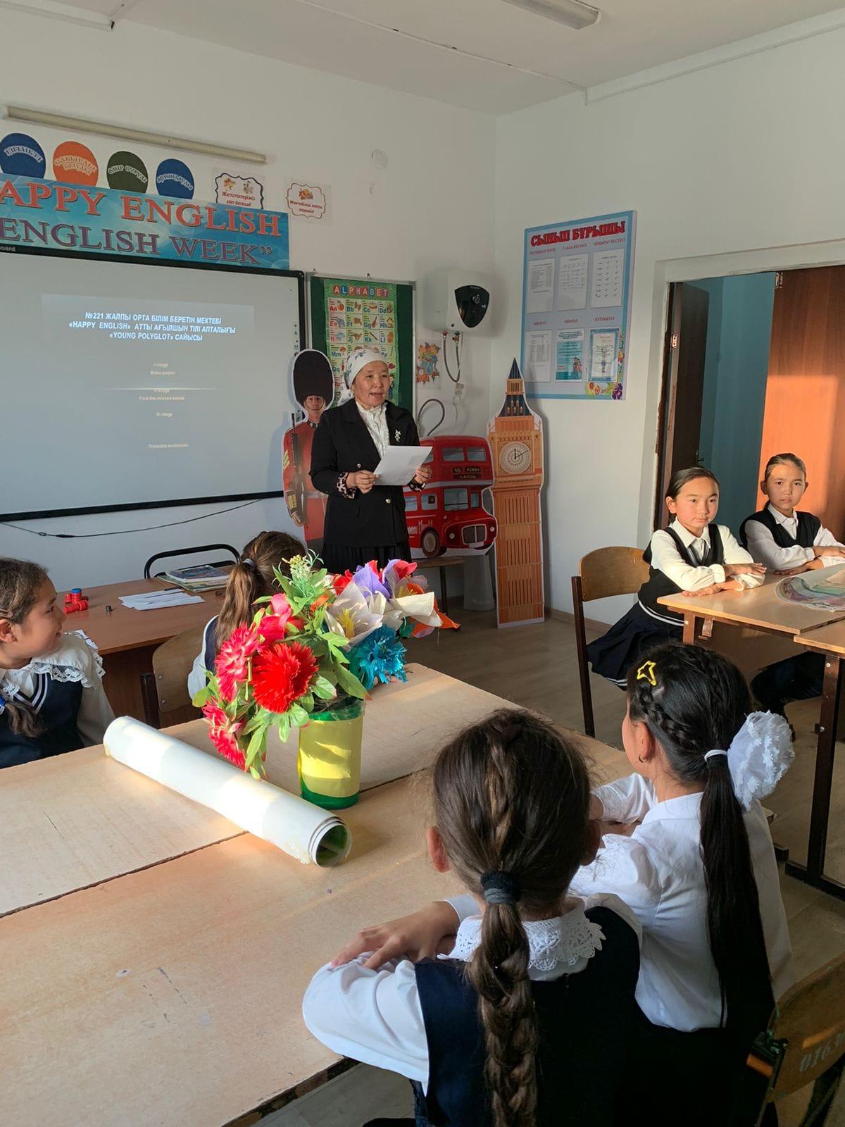 №221 жалпы орта білім беретін мектебінде ағылшын тілі апталығы бойынша пән мұғалімі Ф. Әшімнің ұйымдастыруымен “Young Polyglot” тақырыбы бойынша 2-4 сыныптар арасында сайыс өткізді.