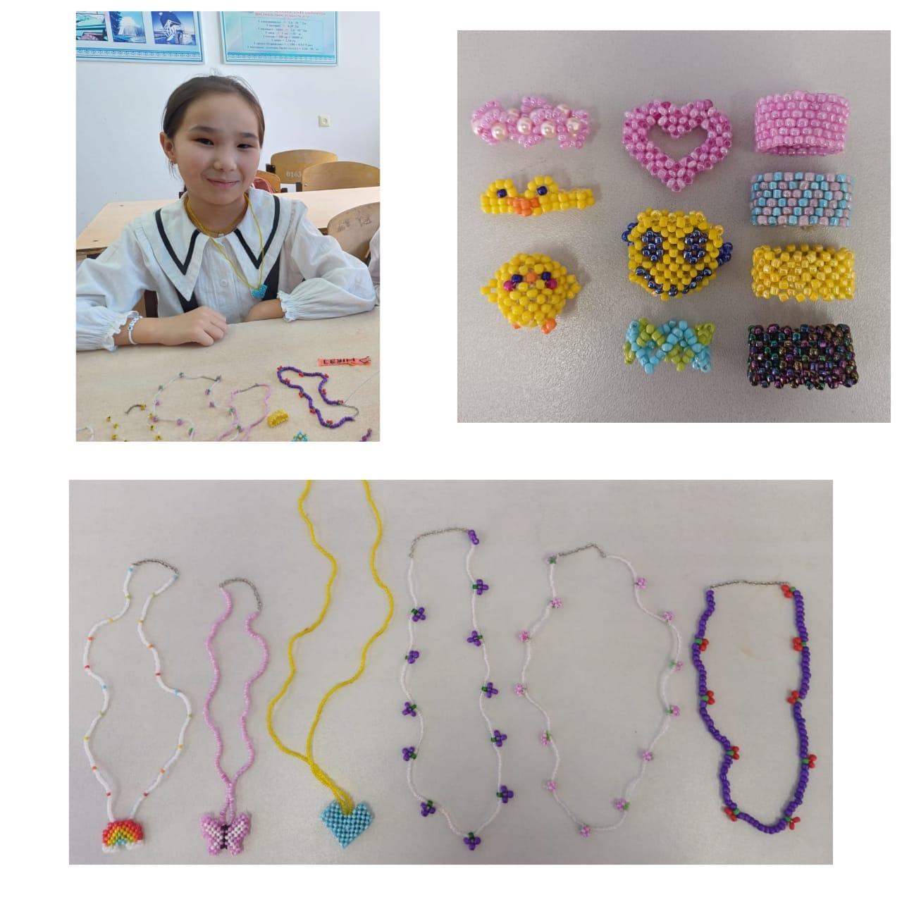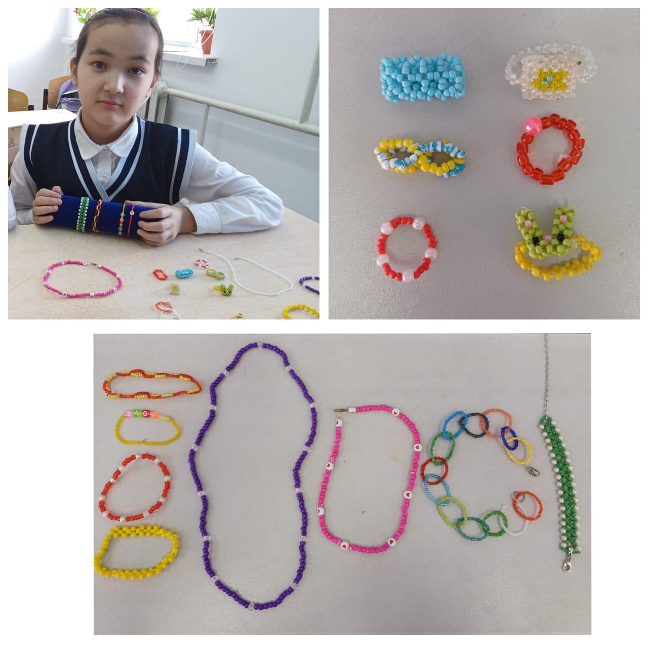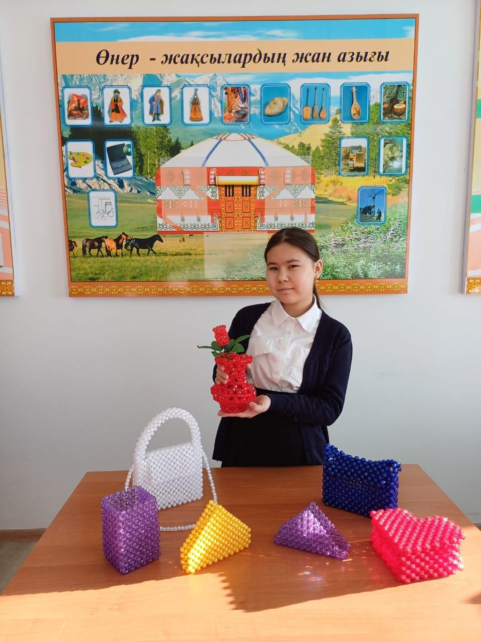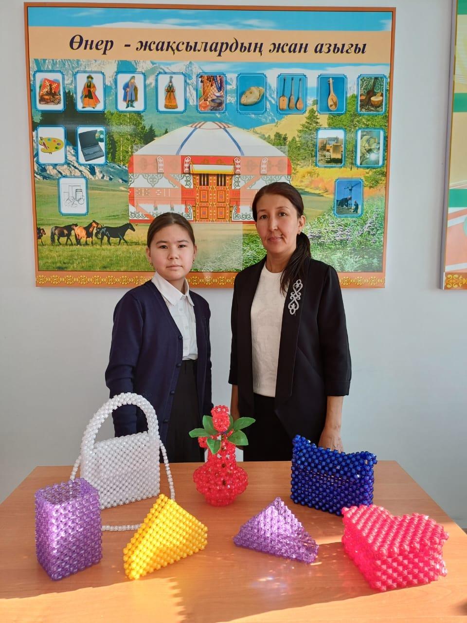 "Ұлттық өнер" көрмесі аясында 2 ақпан күні көркем еңбек пәнінің мұғалімі Д.Досманбетованың ұйымдастыруымен 5-6- сынып қыздарына "Моншақпен тоқу өнері" атты іс-шара өткізілді. Шара барысында 6-сынып оқушылары М.Нұрланқызы моншақтан жасалған сөмке,қаламсалғыш тағы басқа қажетті заттар жасап таңқалдырса, С.Оразалы мен А.Арыстанбек бисермен тоқылған әшекей бұйымдарын таныстырды.