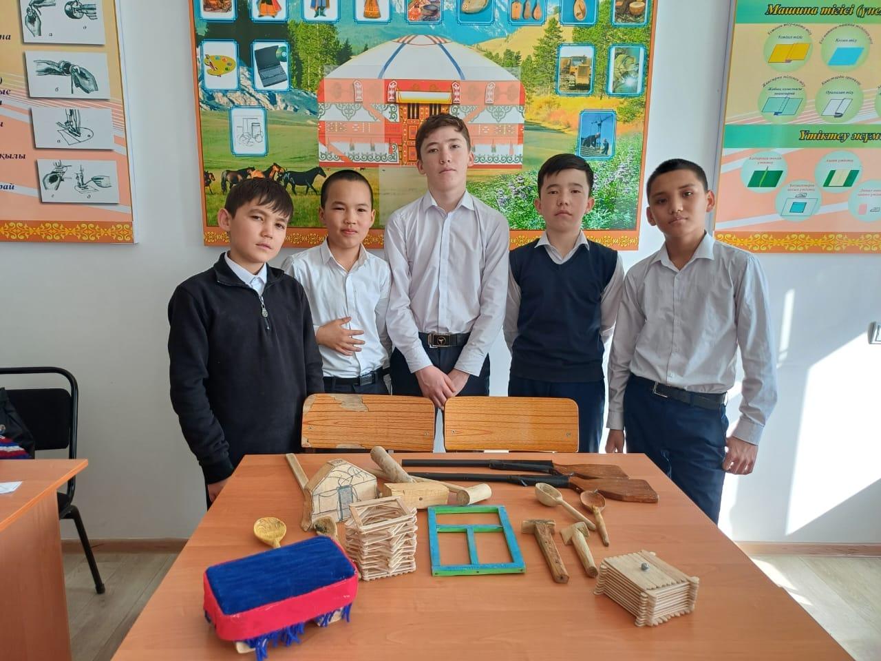 09 февраль 2024 0 1 2 3 4 5 Ағаштан бұйым жасау өнері Шара барысында ағаштан тұрмысқа қажетті және тағы да басқа бұйымдар жасалды. Мақсаты: оқушыларды еңбекқорлыққа, жауапкершілікке,ептілікке тәрбиелеу.