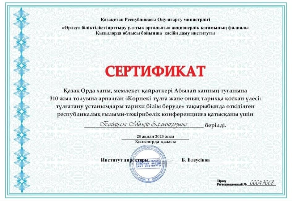28 февраль 2023 0 1 2 3 4 5 Республикалық ғылыми-тәжірибелік конференция "Өрлеу" біліктілікті арттыру ұлттық орталығы ұйымдастырған республикалық ғылыми-тәжірибелік конференция