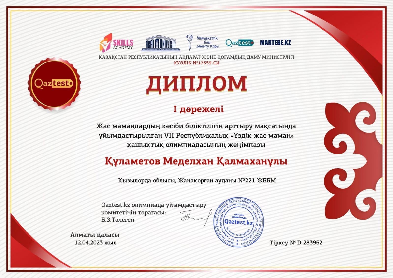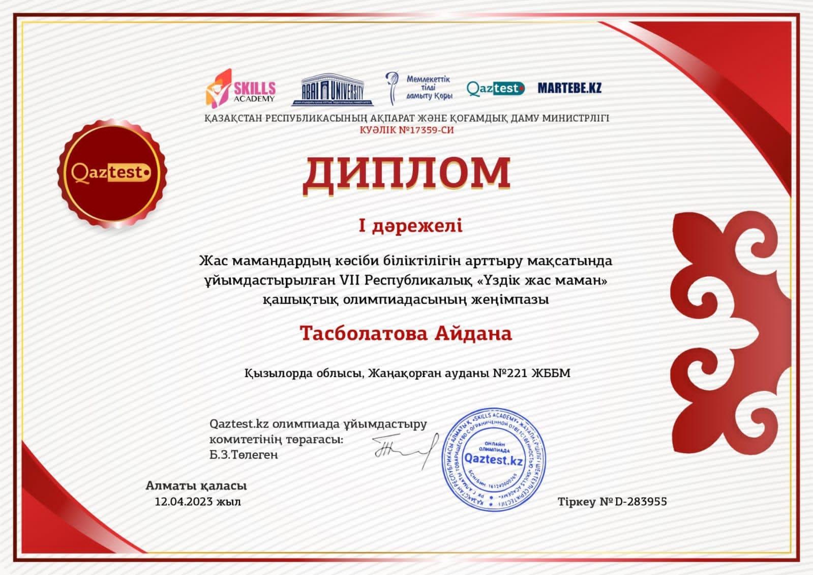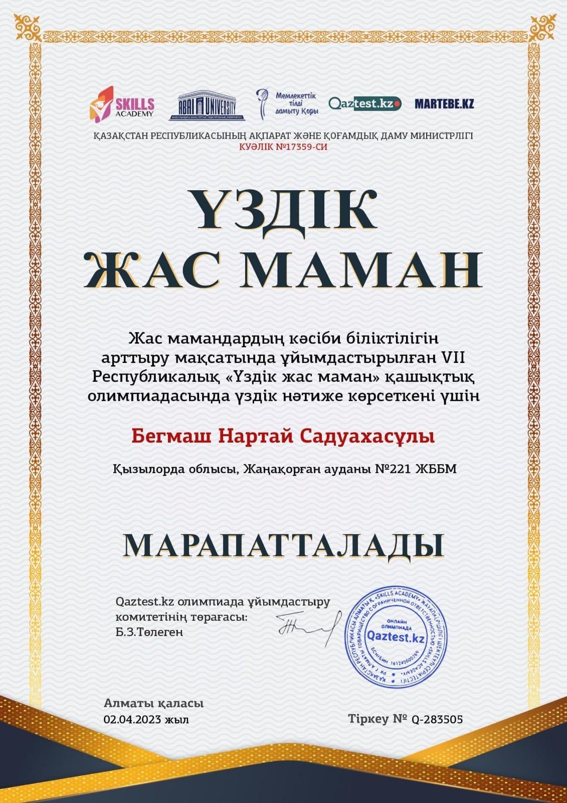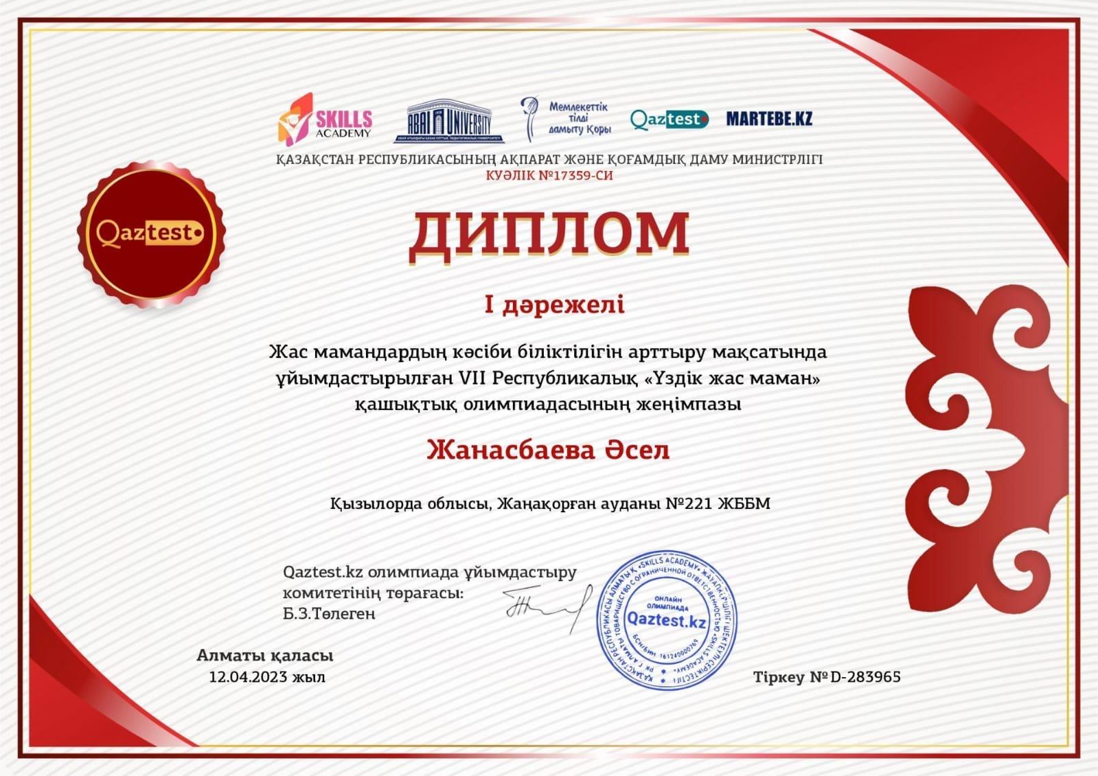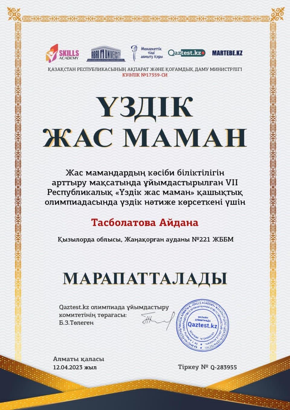 «Үздік жас маман» олимпиадасы