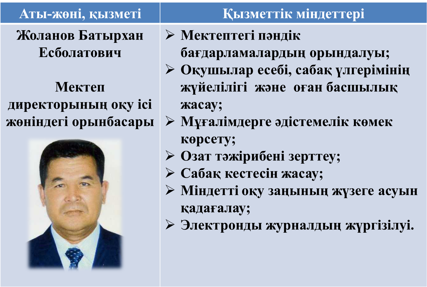 09 ноябрь 2019 0 1 2 3 4 5 Жоланов Батырхан Есболатович Жоғарғы санатты қазақ тілі мен әдебиеті пәнінің мұғалімі, педагог-зерттеуші